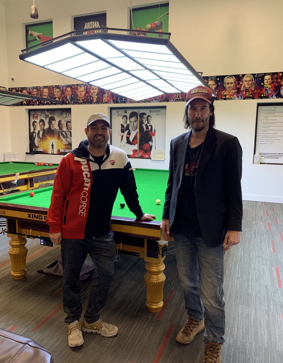 GUESS WHO WALKED IN TO PLAY SNOOKER??? Yes KEANU REEVES