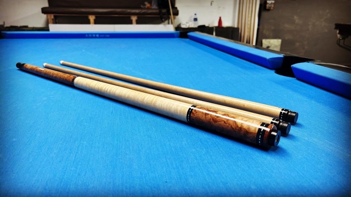 Received my Josey cue a few days back. Loving it! Red mallee burl with curly maple handle, as well as sterling silver ringwork.
