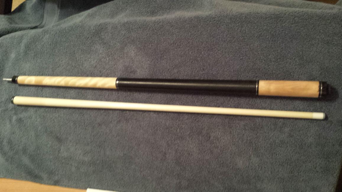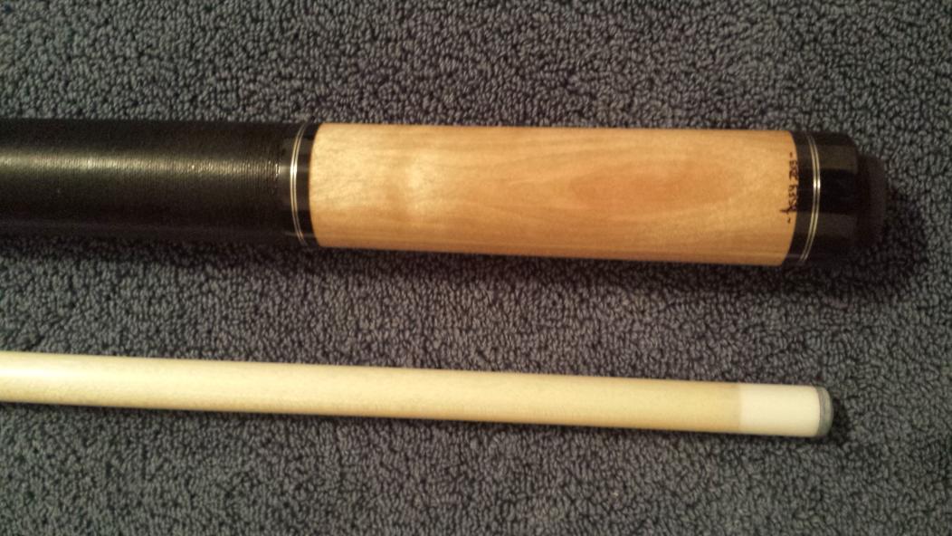 The cue is about 95% new. It has that great Josey hit. The wood is flamed birch. Black pressed wrap. Price is $450 delivered CONUS. Open to all trades.