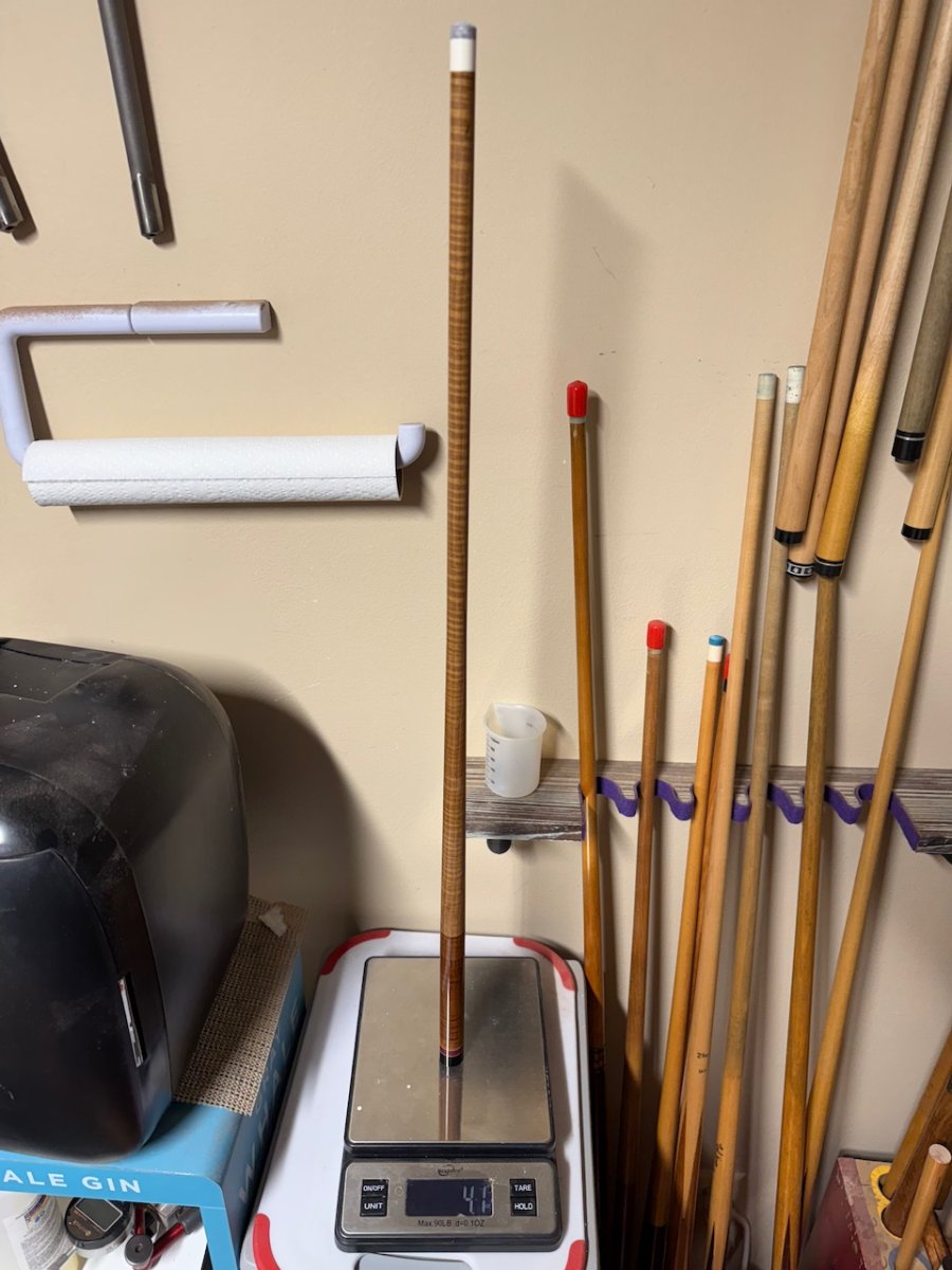 My impression is I wish I had done this sooner. I now have 3 KW shafts that let me play any of the six big pin cues in my case. Today was a real treat. And the KW shafts all weigh pretty much the same weight despite having different diameters. Two 12.6mm shafts weigh 4 ozs and the 3rd shaft is 12.75mm and weighs 4.15 ozs. This is what I was hoping for and IMO, worth the effort. I really enjoyed the feel of a 29” KW shaft more than a 30” KW shaft the same wt. after having played with one.
