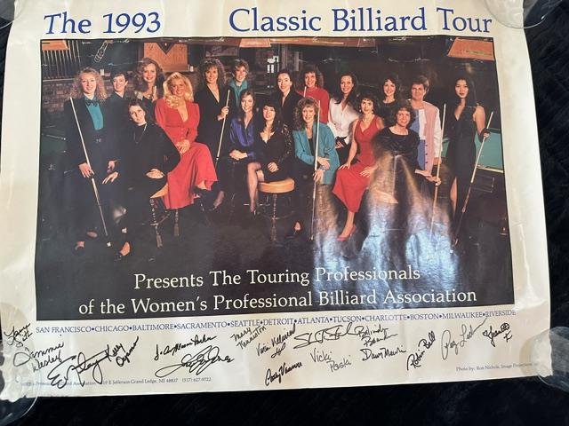 Signed poster of the ladies of 1993 Classic Billiard Tour.