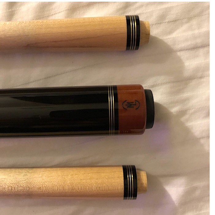 I just won this cue in a raffle,anyone who knows cues knows Mike Lambros cues are incredible players. 15.6oz ebony Merry Widow with Black/white Irish linen wrap, ultra joint, 2 silver, 1 gold or brass ring at joints. Shafts are 3.7oz 1 is perfect the other is very lightly played, don’t know ferrule or tips, joint protectors are included. I would rate this cue at a 9 out of 10, I only play 3 cushion and have 2 carom cues already. I have a standing offer of $1200 from an az’er But told him I was offering here first. $SOLD includes shipping in the us.