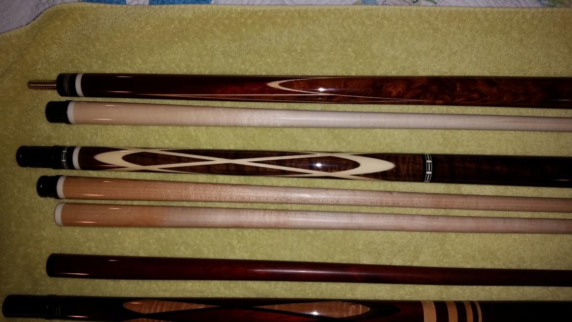If you have not had a chance to work with Larry then you are missing out on a class act. This is my personal collection and they are absolutely amazing. The finish and craftsmanship are AMAZING. He is the nicest guy and a true craftsman of the art of cue building. Thanks for looking at mine and if you get the chance to play with a Vigus Cue you will not regret it.