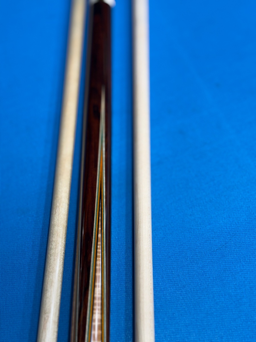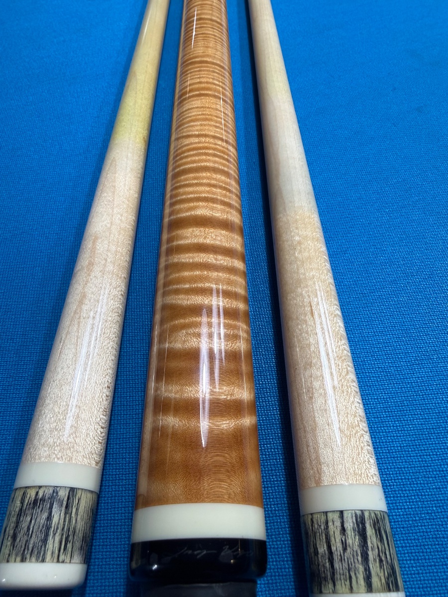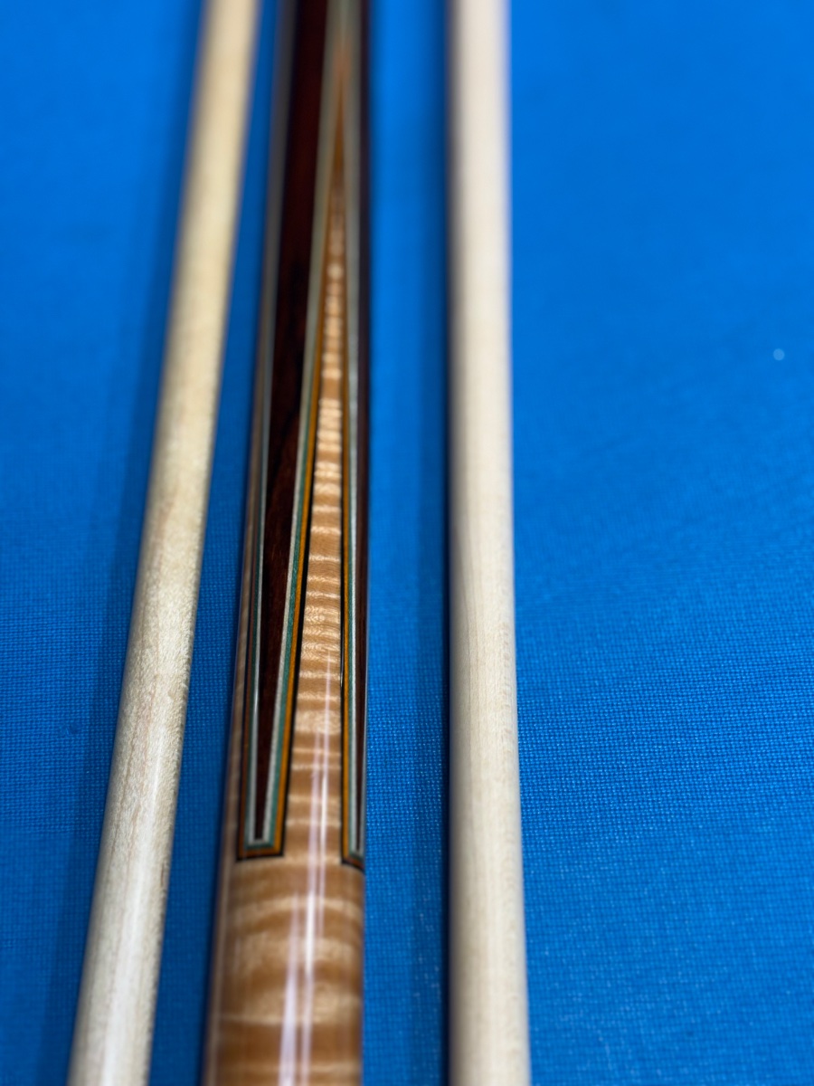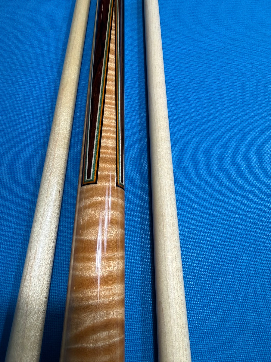 Selling my Beautiful Larry Vigus custom cue. 4 bridged Veneers. Curly Maple and cocobolo wood. Beautiful ring work like any of Larry's cues.