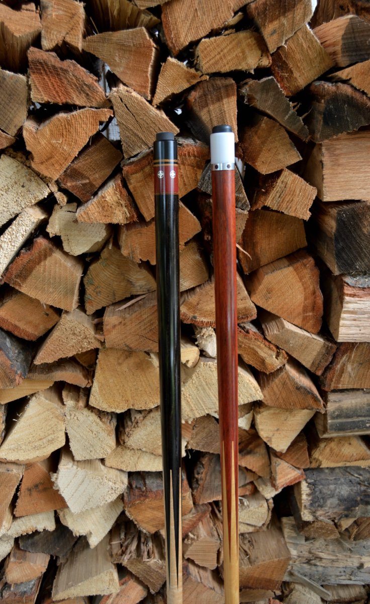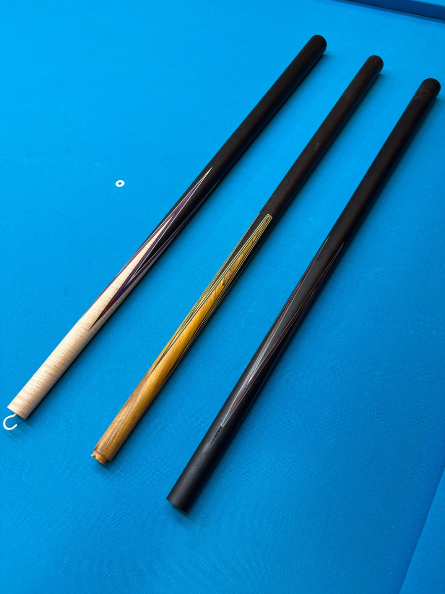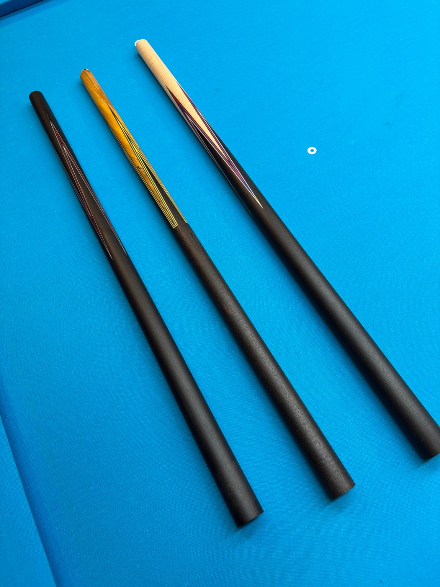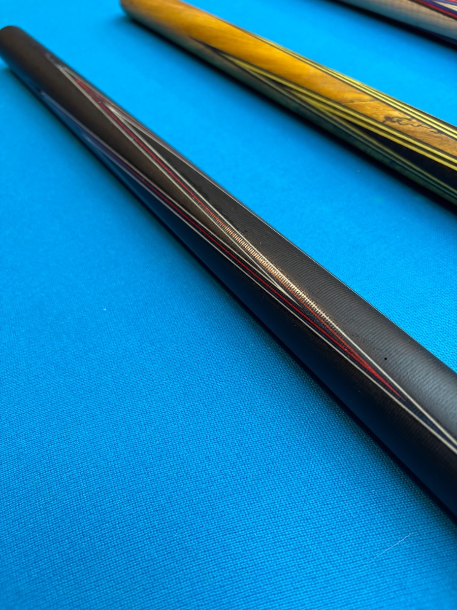 Can’t get any good pics right now, but the blank is black on black with red, blue, and natural veneers.