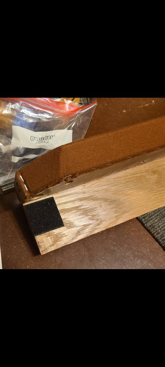 When recovering the ends of your rails, you need to pull the cloth back to the pocket iron mounting hole, and staple near there, that way, no wood or staples are visible to the customer. I can see the staples showing at the corner pockets in those pictures, not a good look, sorry, but that's just my opinion, you do what ever you want. Otherwise, your rail work looks real good.View attachment 688957
