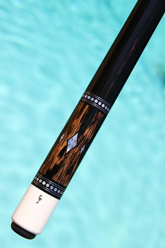 Here is a stunning Ed Prewitt with investment grade Black & White Ebony. Cue is wrapless with an ebony handle. Pictures cannot begin to due the wood in this cue justice.