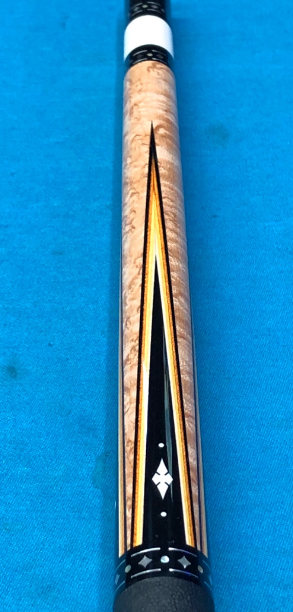 Here's mine. Brazilian rosewood Titlist Hoppe. Veneers made by me when I was making them. Stellar figure hard curl. Points including interior points are dead nuts. Ele wrap. I've not owned or shot with a cue that I like better that I can recall. I'd like this cue to be placed in my casket or burned along with me when I leave this world! Not for sale.