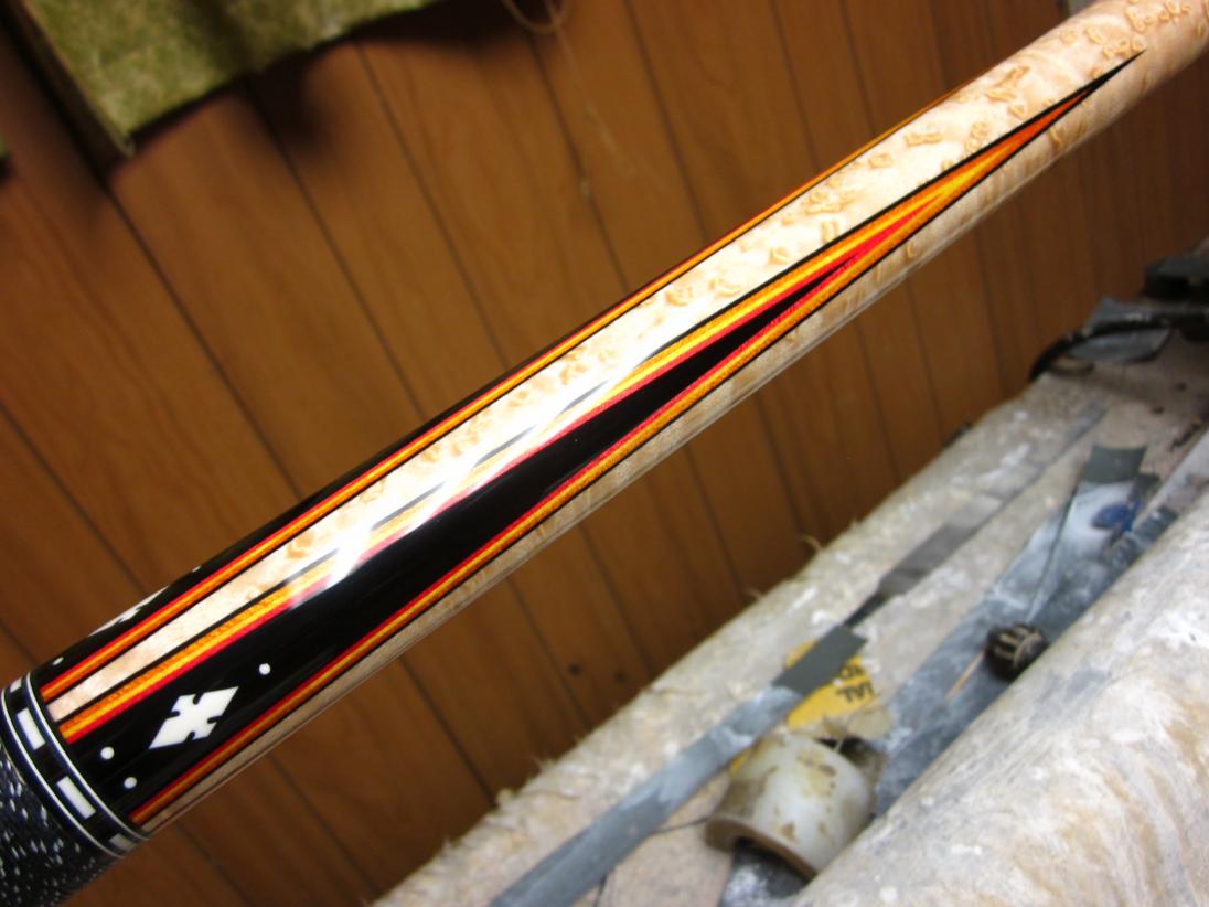 A flame cue for Chris with ivory rings and inlays