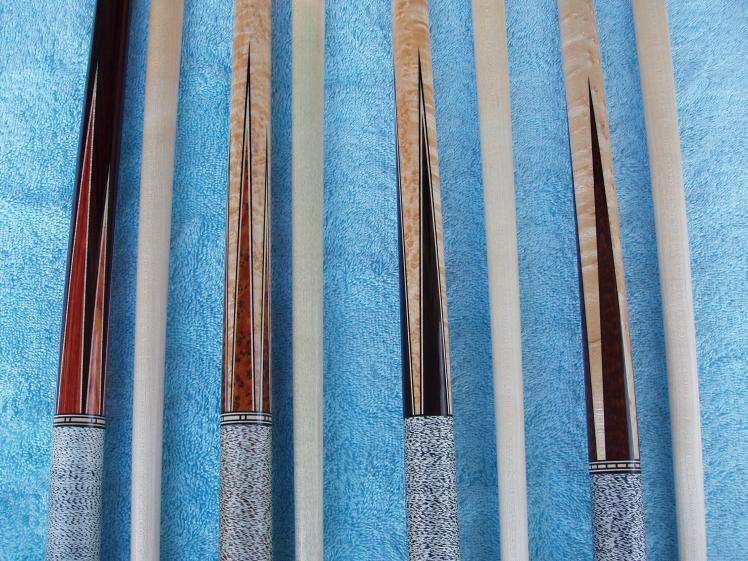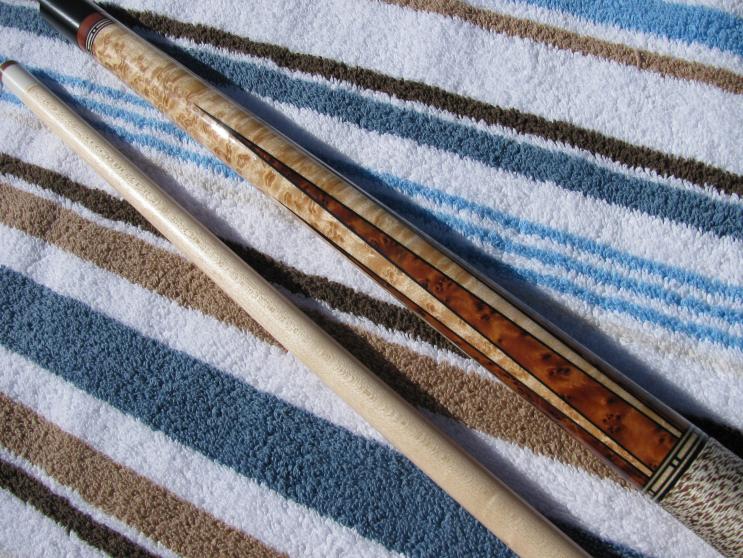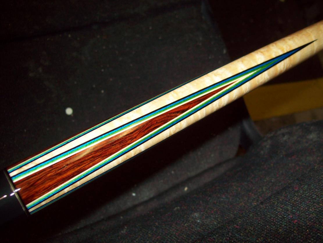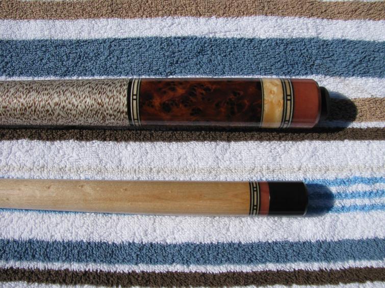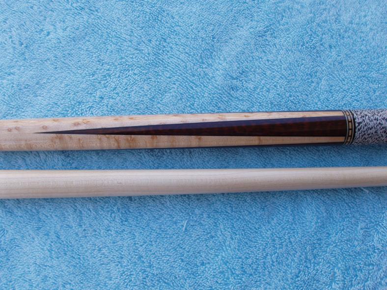 Got a call from Jeff this afternoon, he informs me the 12 point pau ferrau cue (6 re-cuts, 6 points, one veneer) has been shipped to me and will be here by FridayIt's 57 1/2 inch long with a 4 oz shaft and a total weight of 19.4 oz.