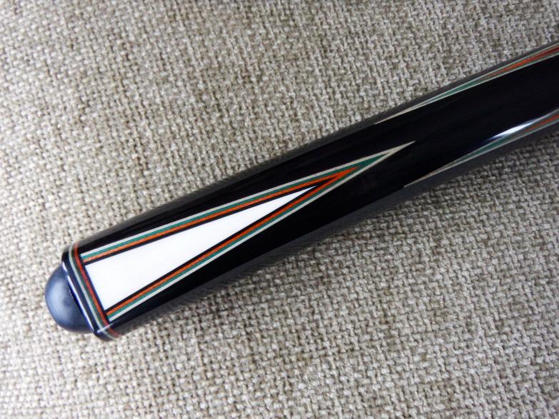 Full splice 8 points high and low, Ebony into Tulipwood with veneers on all 16 points . This is only the second one Jerry has made like this and the only one with a wedge. Solid ivory joint with that sweet Rauenzahn hit.