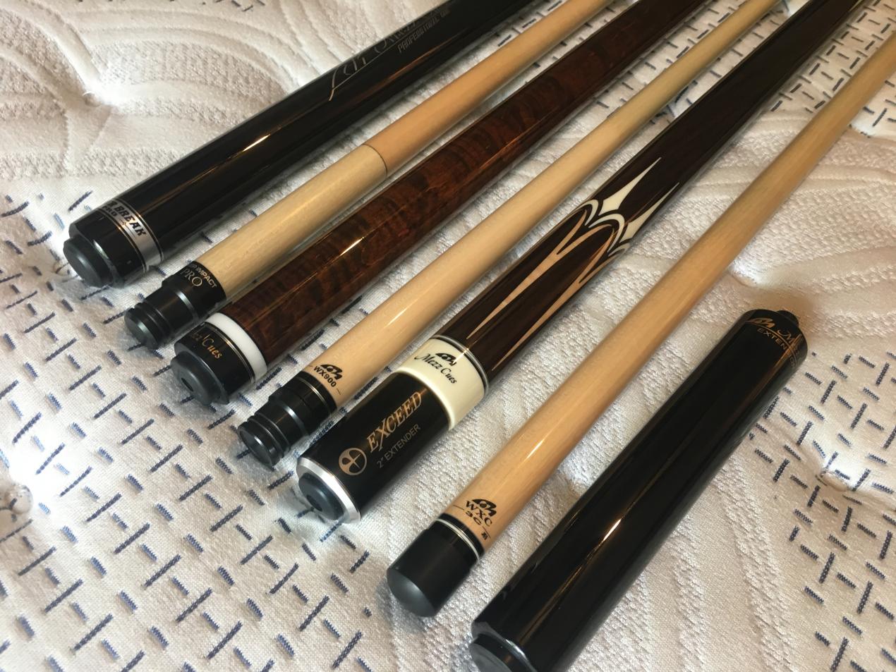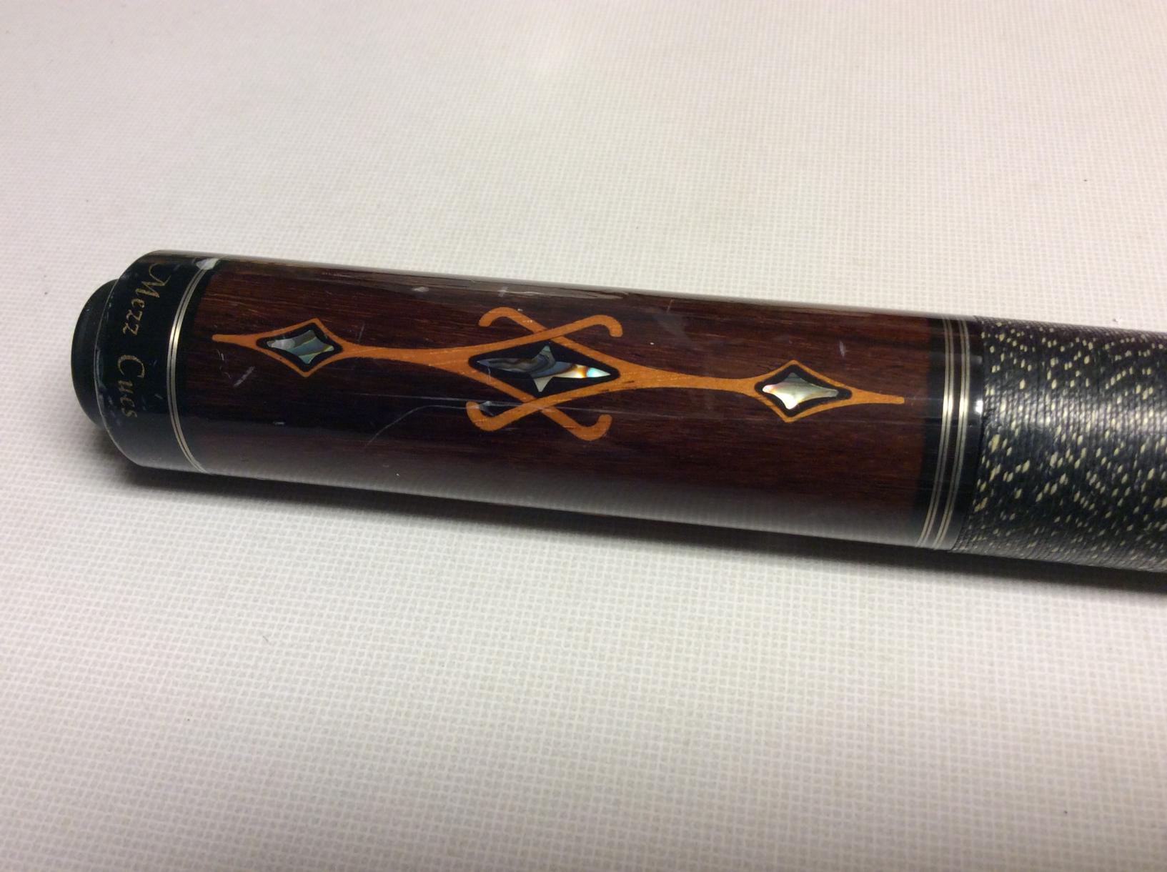 Brand spankin' new EC-7 (which was ordered from Cuestore.com as a ZZ42), and which now has a Triangle tip on the WX-700 shaft. This cue just sings. It's the best feeling cue I've used. The photos don't quite do it justice. Reddish brown wood with wonderful grain. Firm hit, and a lot of feedback.