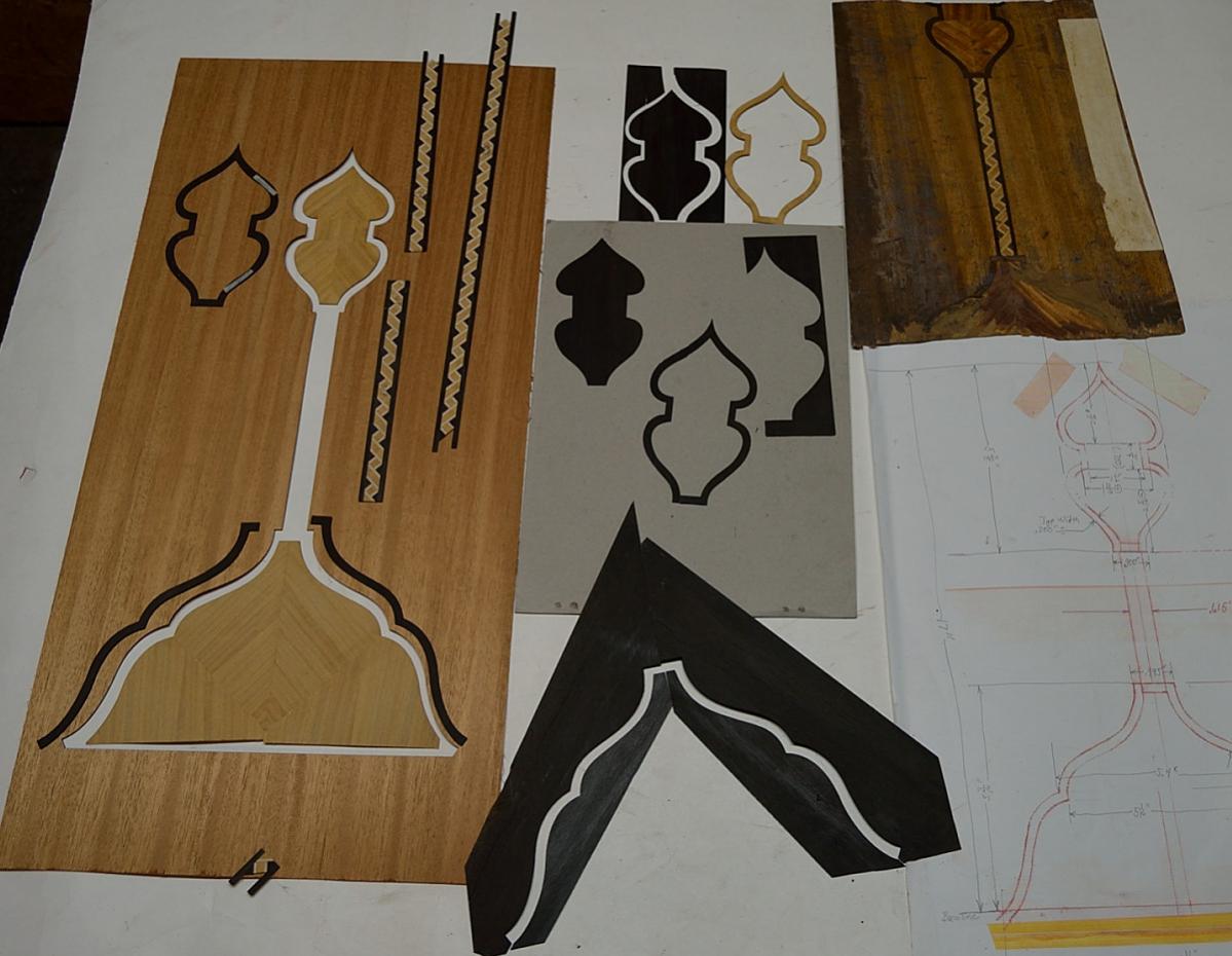 Ran into him at a rally at the local drive in theatre and he asked how the wife's pool table was coming along. I said i had got the veneer sorted & stacked for conventional sawing but my jigsaw kept breaking parts (not the blades). So he convinced me to do a drawing and bring the veneers into the library.