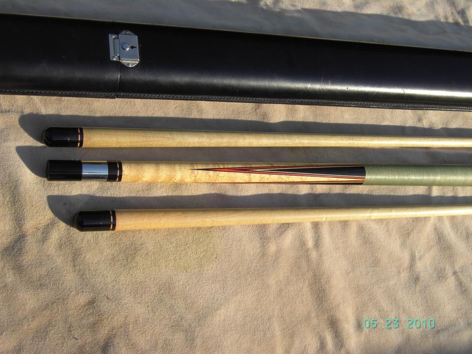 I'm only posting pictures of my cue but can email pics of the other 3 cues to any interested parties. I can also give you the phone number of the owner of the cues for you to discuss pricing. I won't get involved in that, it's between you and him but he knows how special all 3 of these cues are and they won't go cheap. Low ballers and tire kickers shouldn't waste their time. Serious buyers only.