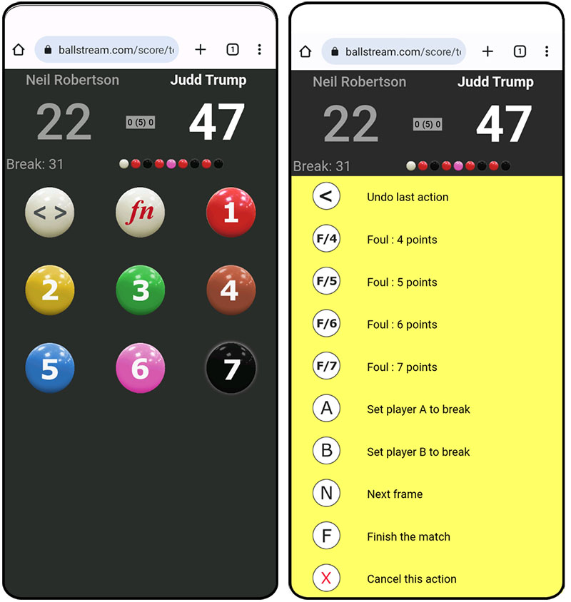 BallStream Live Scoring now supports TOUCHSCREEN for Snooker.