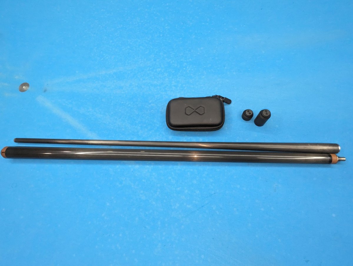 Lot: Becue Naked Break Carbon Fiber Break Cue & Becue Leonardo Balance Weight Bolt System