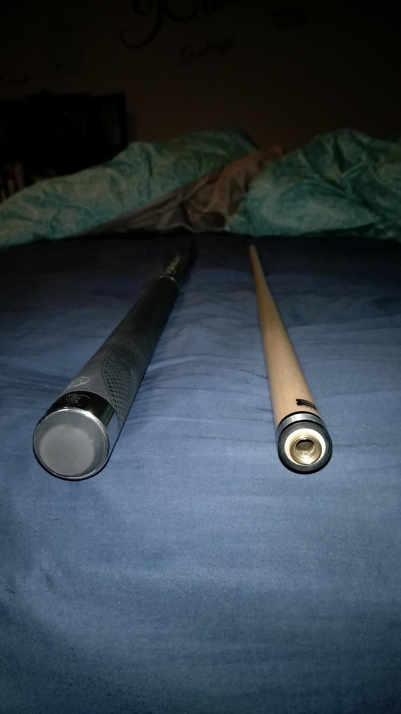 Last Price Drop$$$$$Sold$$$ obo. Black. Uni-lock 19.5oz. 12.75mm laminated Low deflection shaft with carbon fiber ferrule with red fiber pad between the samsara jump break tip. Breaks great !! The only reason selling is to fund a custom break I already put a deposit on... Kinda backwards I kno Straight together and apart . Super clean 9/10. Shaft just refinished so looks and feels new message with offers or questions can take better pics if needed thanks