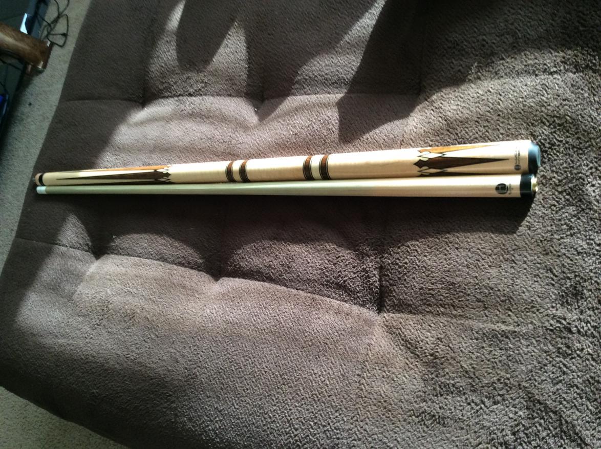 Cue is dead straight together and apar. It weighs 19oz. The shaft is zero flex point LD shaft with a Kamui soft tip. Shaft is 12.75mm.