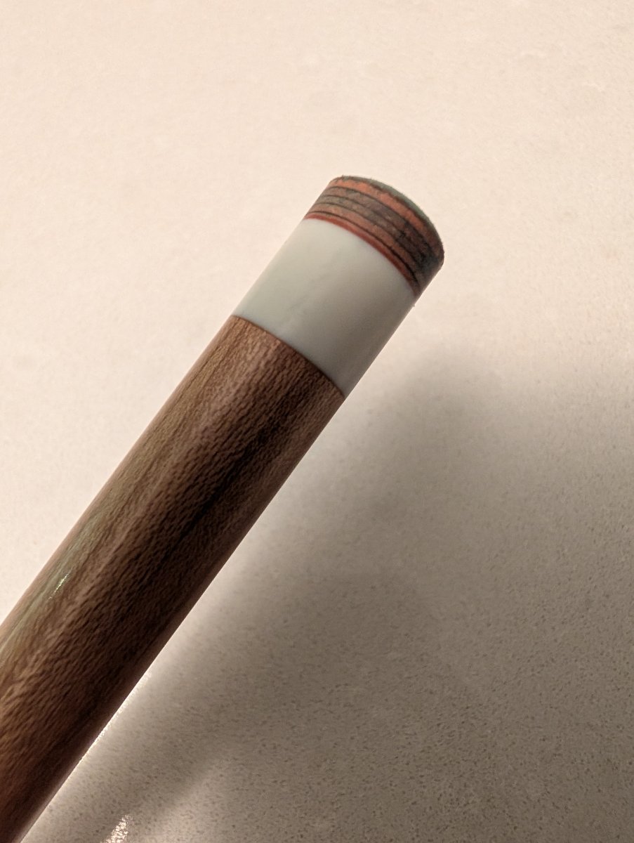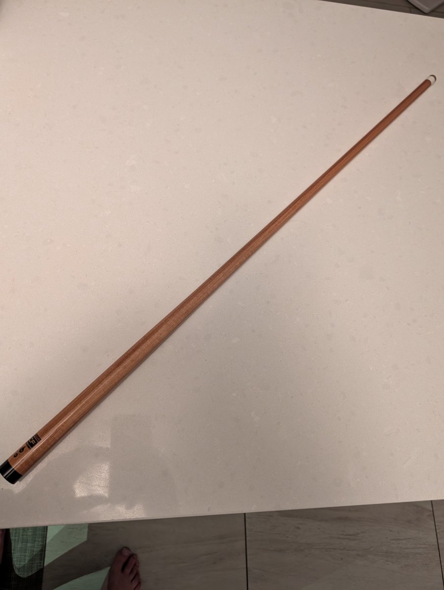 This has been used for only a few hours of practice, and is like new. It's got the factory Kamui Brown Soft tip, in 12.5mm, not shaped or scuffed outside of the factory. 29" length. Joint is 3/8-10 and measures 0.840" on the outside. Shaft weight is 109grams or 3.8oz. 10pc spliced Kielwood with CF core.
