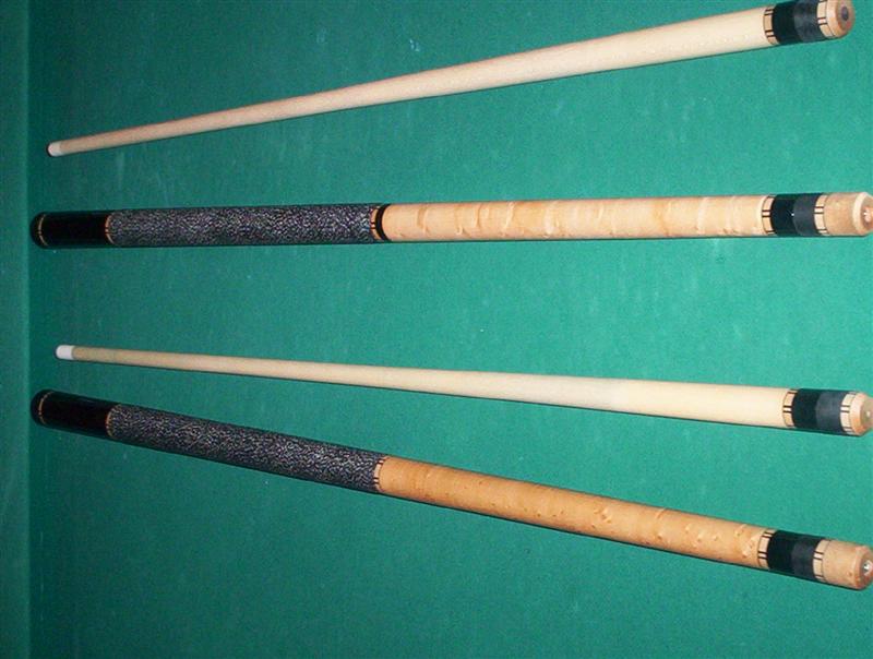 These are our matching set made special in the old traditional style for our sponsored player who debut was at the derby city classic . He placed 39th overall in the open 9 ball. We just wanted to share these cues with you azer's.