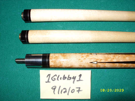 There are no nicks/dings/dents/war stories with this cue.....condition is perfect, both butt and shafts (except the slight roll) Person who took over Bill's equipment quoted between $180/$240 to reproduce a second identicle shaft w/correct Mcdaniel taper, (depending on grade of wood you decide). Cue plays/looks incredible. (my camera does not do this cue the justice it deserves)