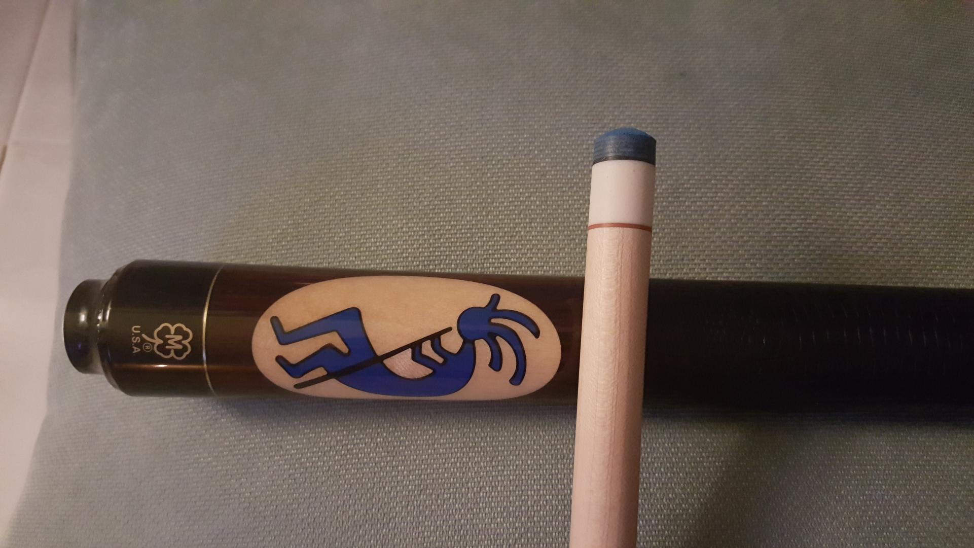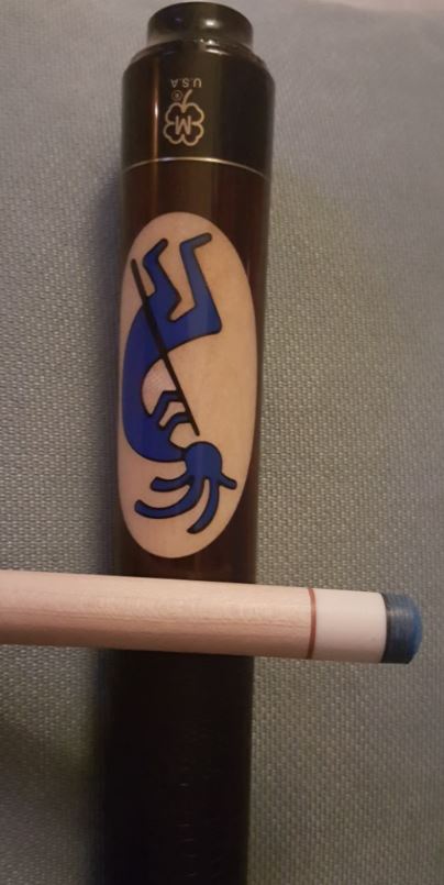 * Blue "Billiard Kokopelli" inlaid in Maple medallion