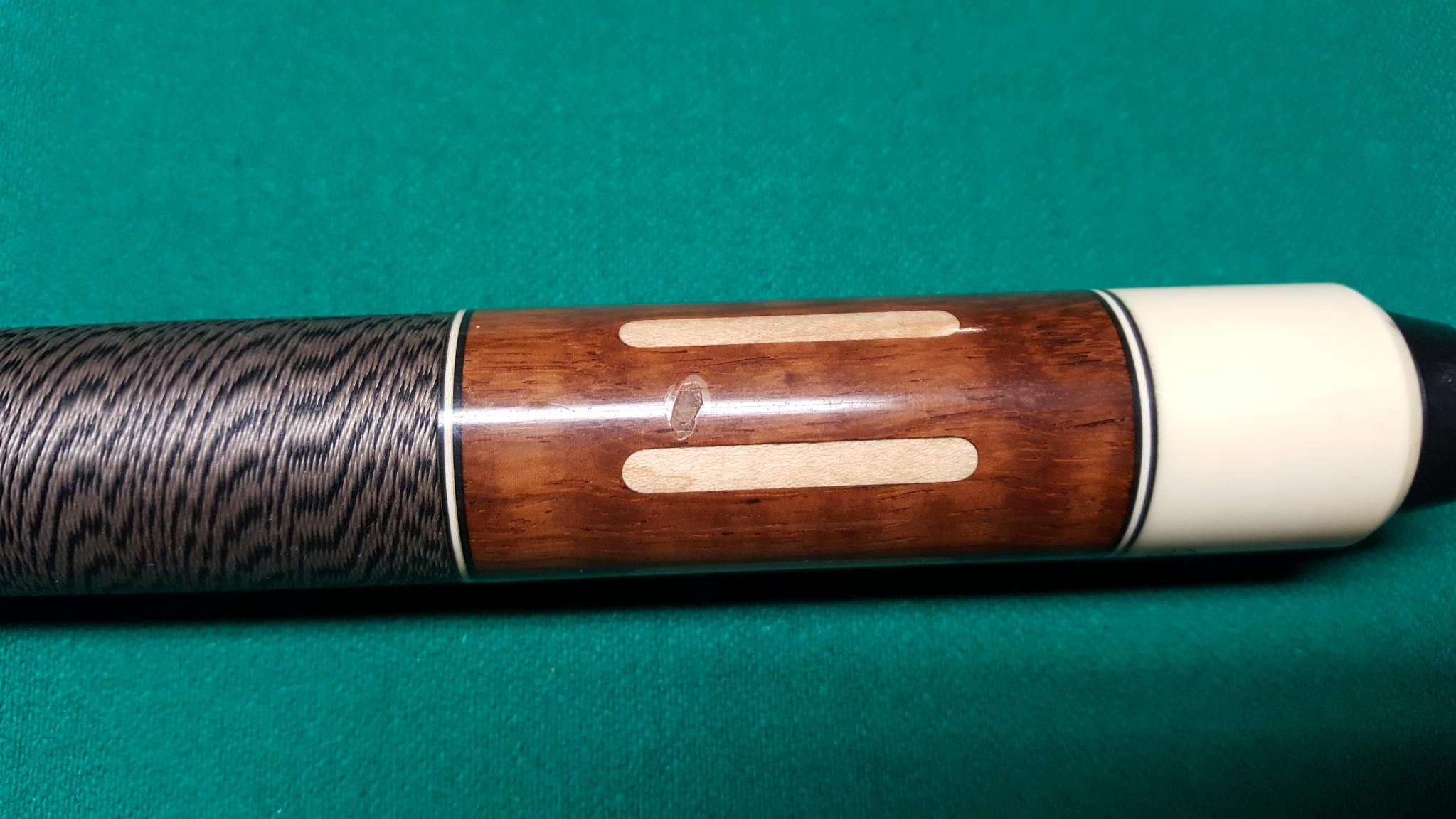 BobY AzB Silver Member Silver Member Nov 22, 2017 #1 Cue is SOLD For sale is a vintage C-4. 19 Oz weight. Butt has a couple of dings including the deep one shown on the pics. Needs refinished. Wrap is the original nylon and in great shape. The shaft is a blemished G-Core which fits real nice. $150 shipped CONUS. Last edited: Nov 24, 2017