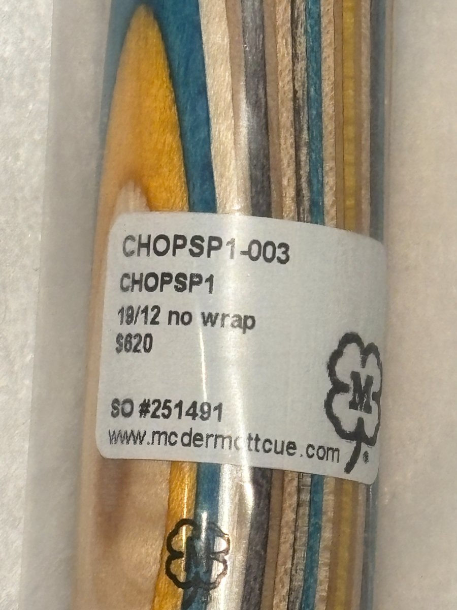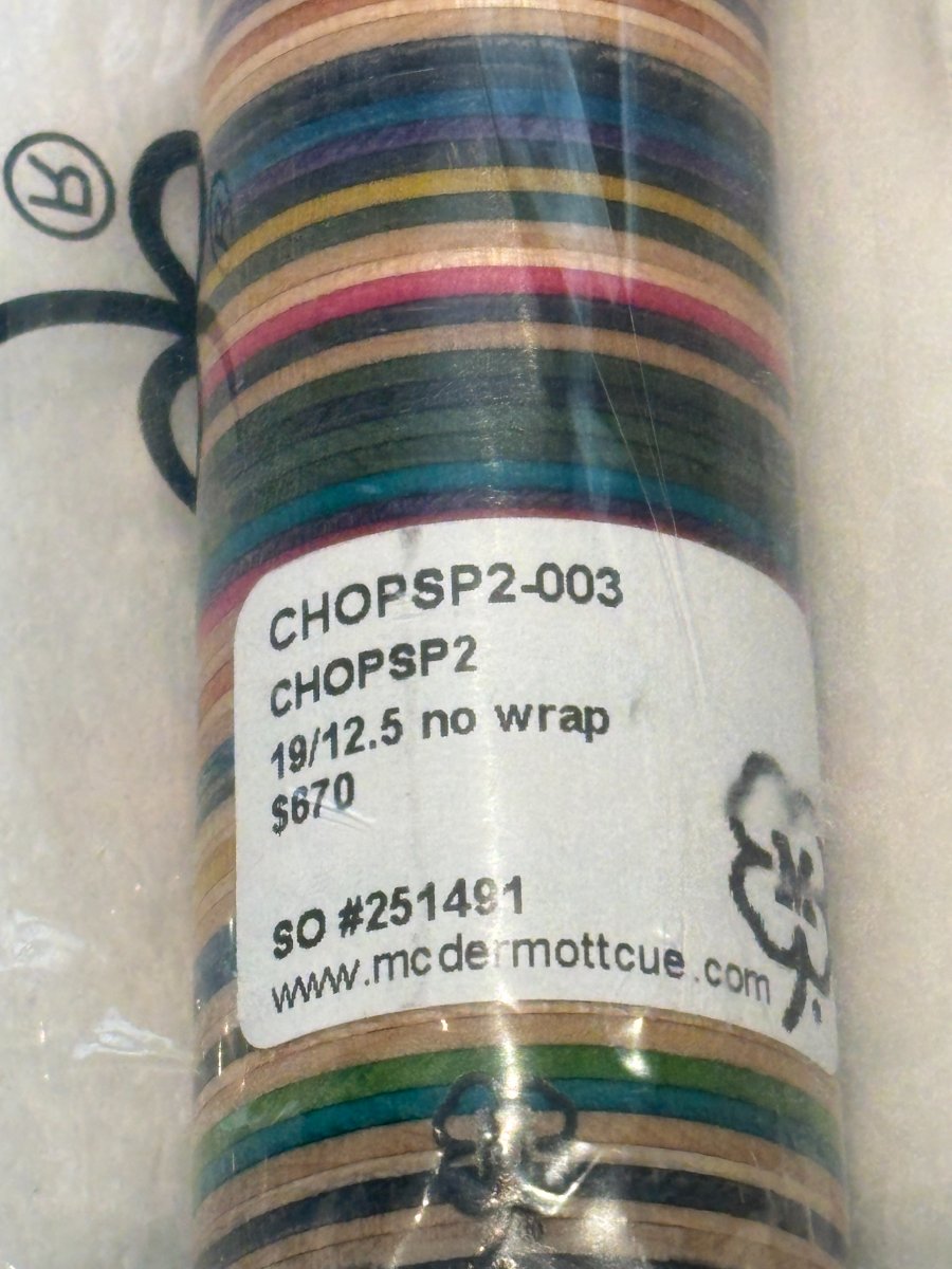 - 19oz with 12.5mm shaft. This is the Stacked model (CHOPSP2). This cue is also SOLD OUT