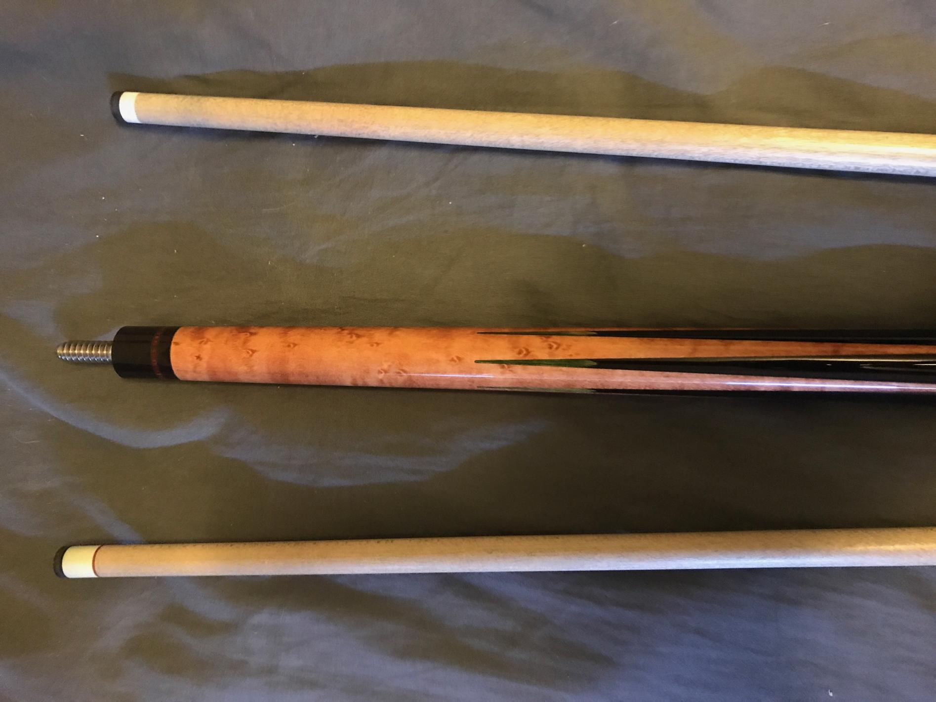 McDermott m35f with original gcore shaft that came with cue as well as a tiger x pro shaft. I also had tiger put on a shark leather wrap on it at their wearhouse in Burbank California as well and a new onyx tip. Cue plays great and is straight and well taken care of. Looking for another high end cue. Locals to Los Angeles area would be be best to do trade with.