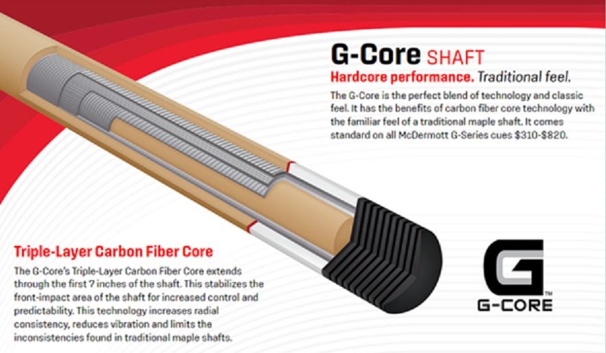 Radial consistency is the shaft’s ability to perform the same way on very shot, regardless of its orientation. The G-Cores Triple-Layer Carbon Fiber Core technology will consistently provide a straighter cue ball path, Minimizing the need to compensate for spin and throw.