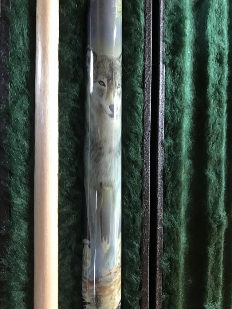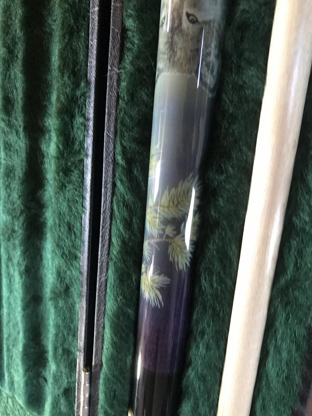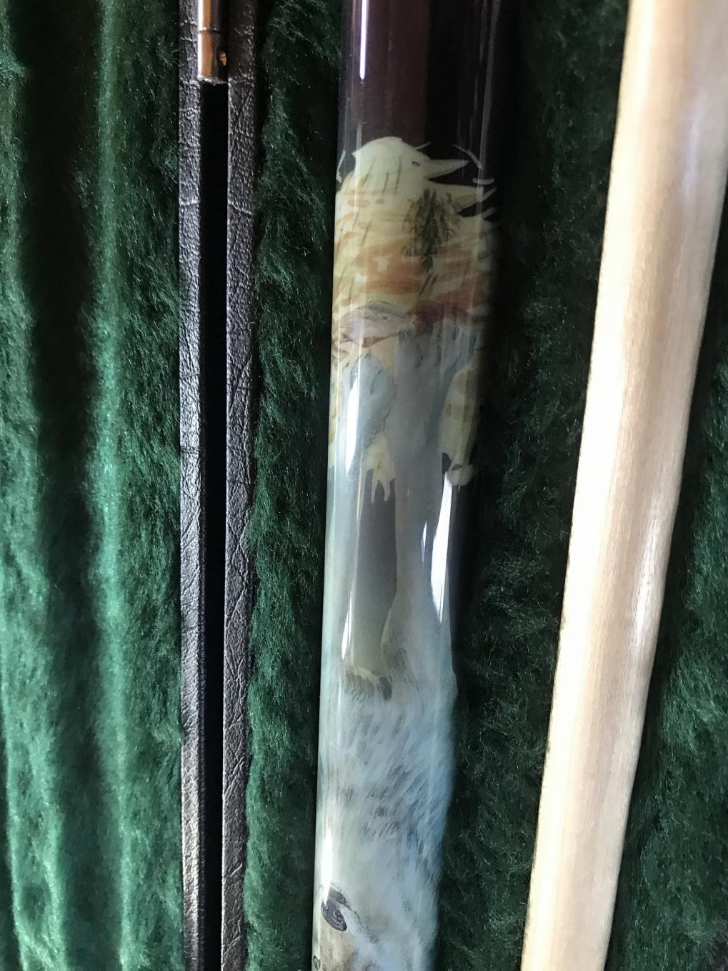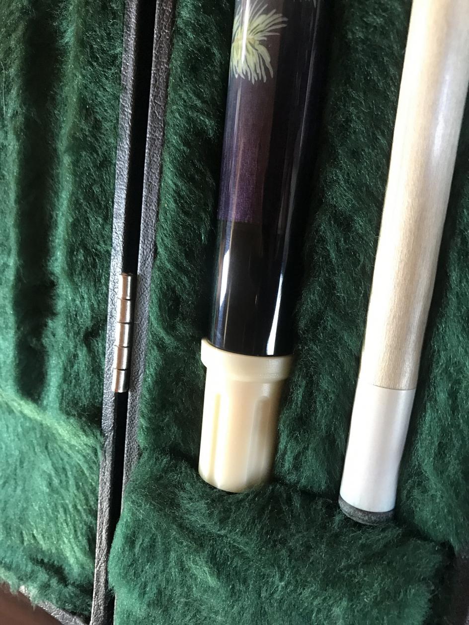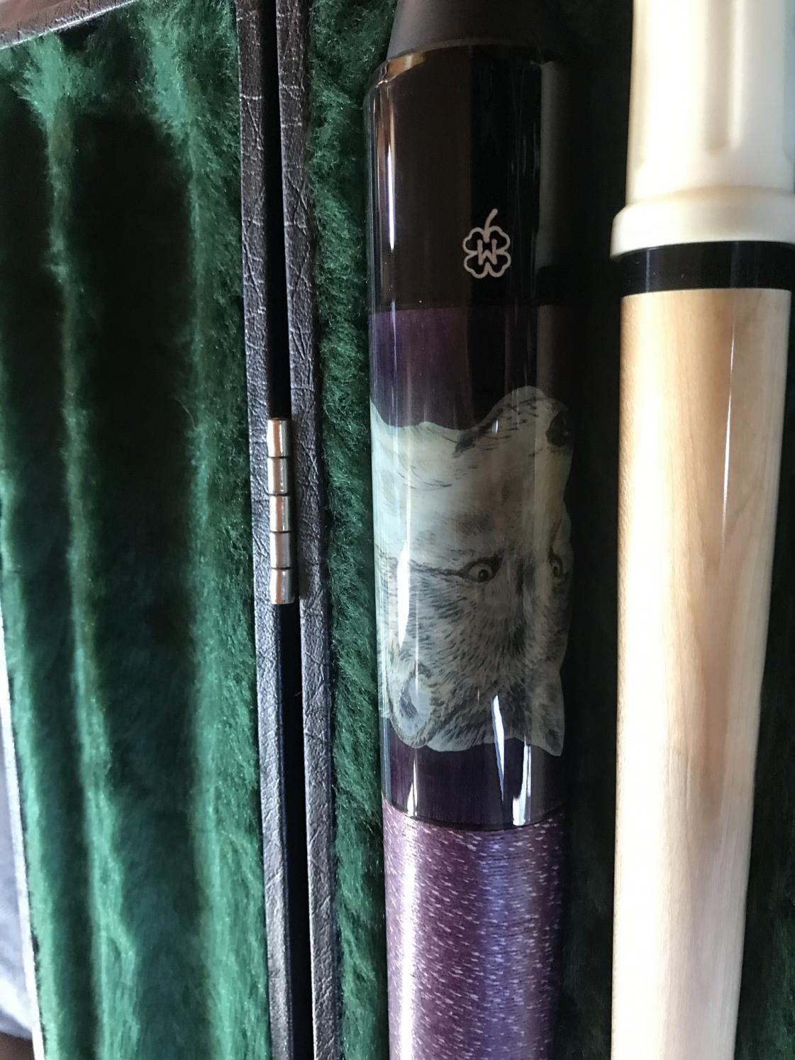 Near Mint, beautiful cue with original McDermott case in nice shape, with original McDermott joint protectors. Nice Package. Butt weighs in at 15.5 and shaft 3.6 ounces and 12.8mm. Butt/shaft straight. Nice pressed Irish linen wrap. First 299.00 friends and family, gets the packaged shipped in Conus.