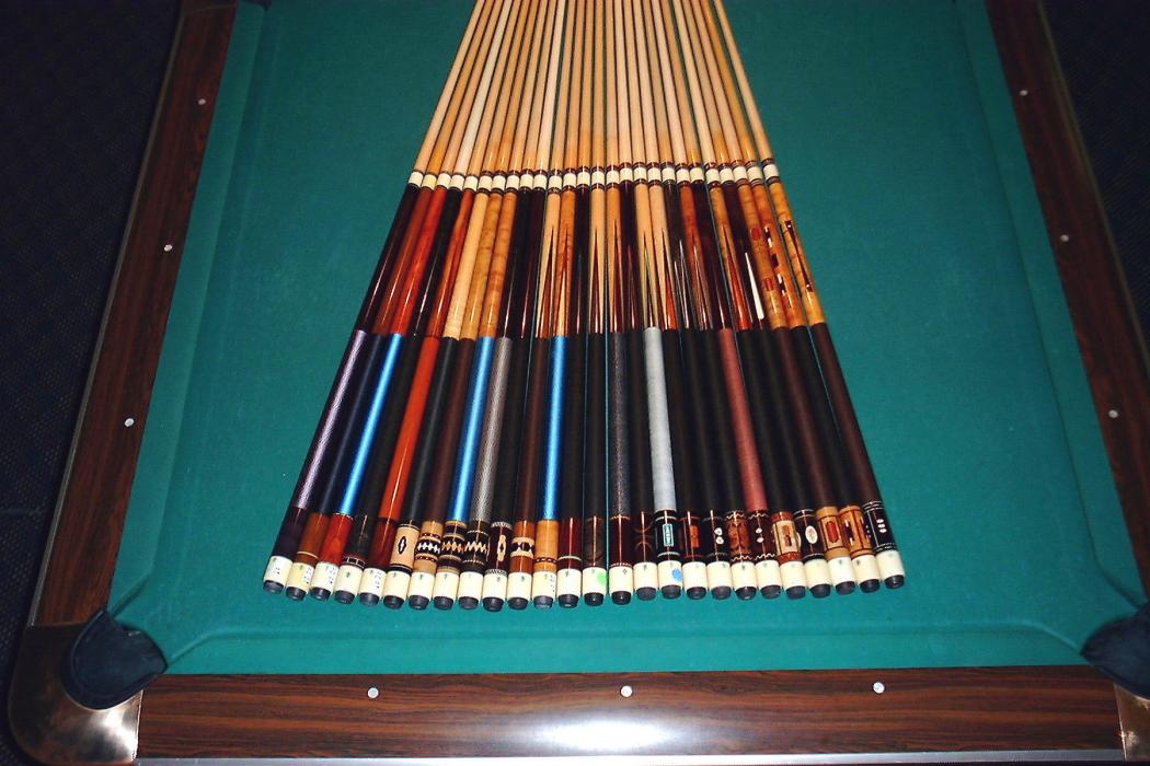 What a great group of cues. The D Mcdermotts play so well and they often used the most beautiful translucent maple. I learned the game when these models were coming out and I always feel nostalgic when I see one. My favorite has always been the D-16 rosewood on rosewood cue, but I mean to own the floating box cue when the chance presents itself.
