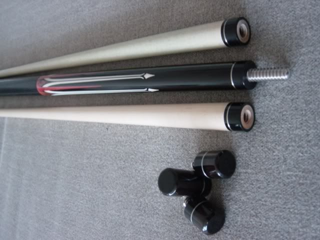 ebony, Ivory, pink ivory & amboyna burl McWorter F/S. ** CUE BEEN SOLD LOCALLY **