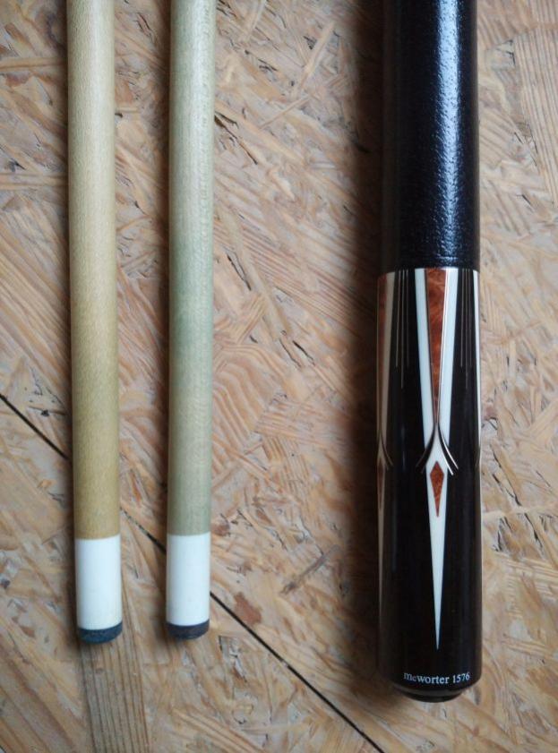 It seems as if it is ebony, ivory, desert ironwood, silver and leather tape.