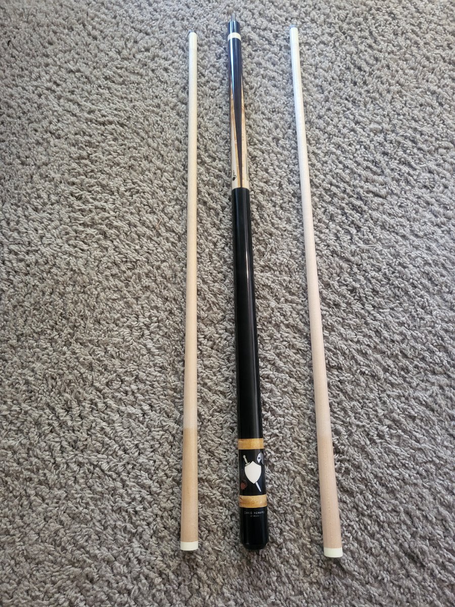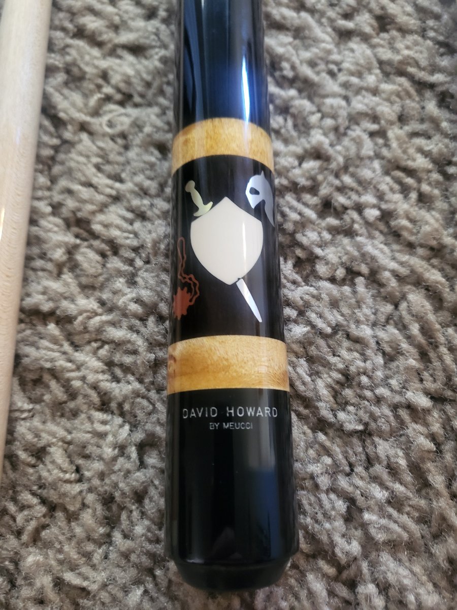 Meucci DH-4 the Giant Killer. Just refinished. (Check video and pics). Absolutely gorgeous cue. The David Howard stamp is bright and really pops. The Bird's eye maple points look sleek going into the dark ebony.