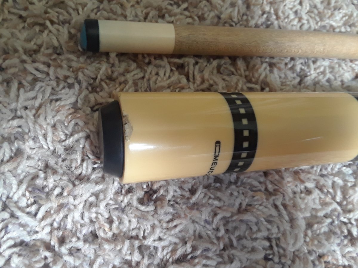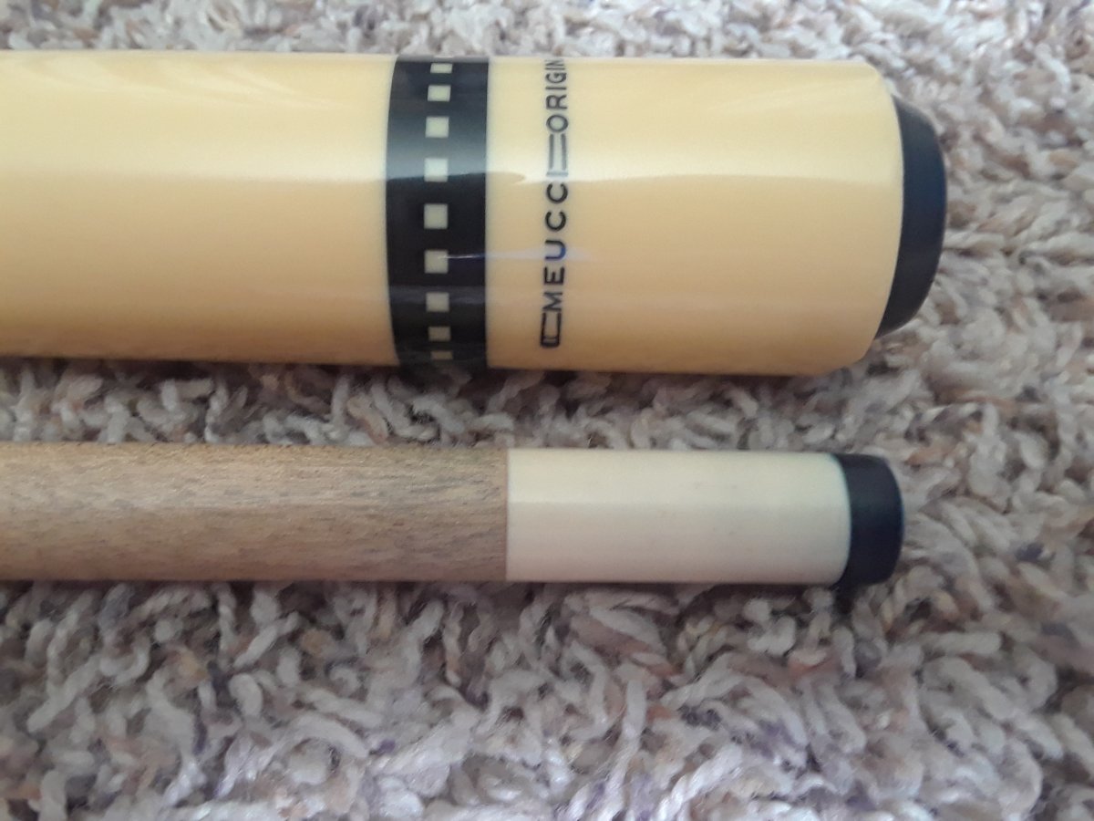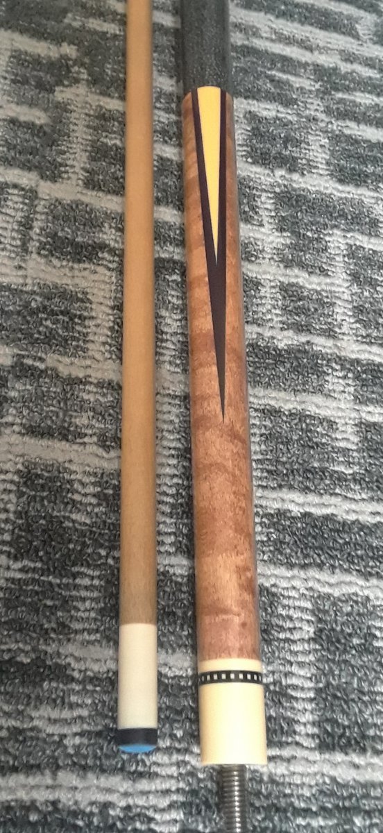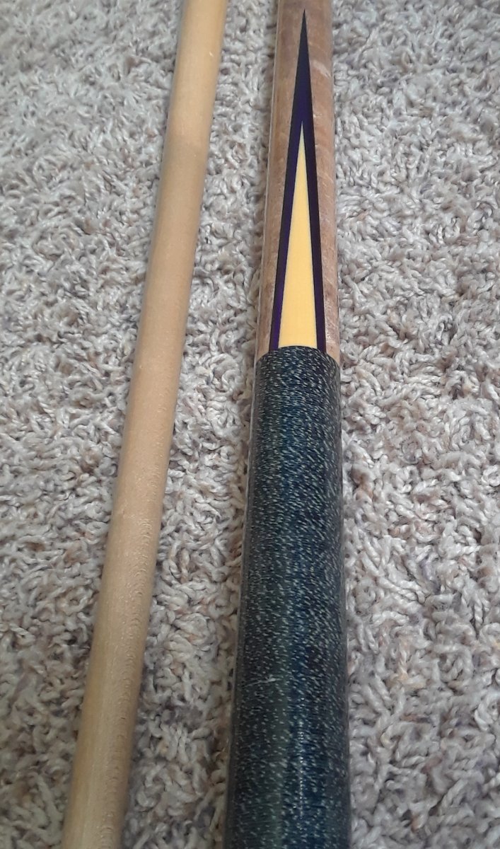 Point is like a yellow ivory out lined in like a dark purple and black. It's hard to pick up on camera. Small chip on butt.