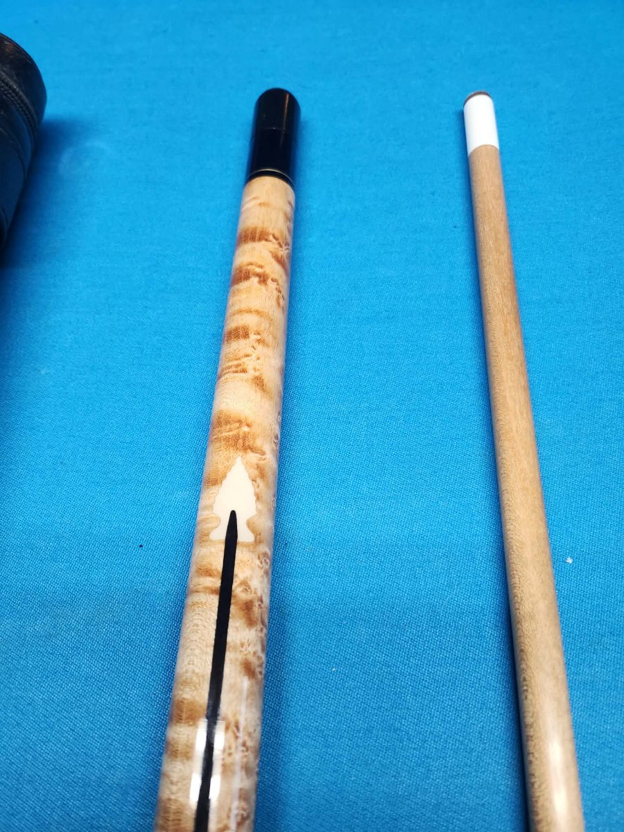 Up for grabs is a beautiful piece of Meucci history—a Meucci Originals Tomahawk (88-5). This cue features the classic bird’s-eye maple forearm and the iconic fletching inlays that made this series a standout in the late '80s.