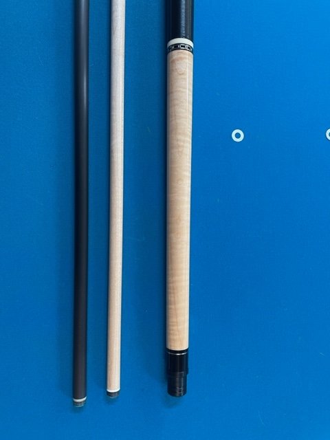 For sale Mezz EC9-CM curly maple with Sigma and Ignite shafts. The cue is lightly used. A couple usual dings in finish (nothing to the wood) though hard to capture in photos. There are also a few chips in the butt cap pictured below. Newer tip on the Sigma shaft only a couple racks played. $850 paypal or open to trades. Great quality playing set for a good price.