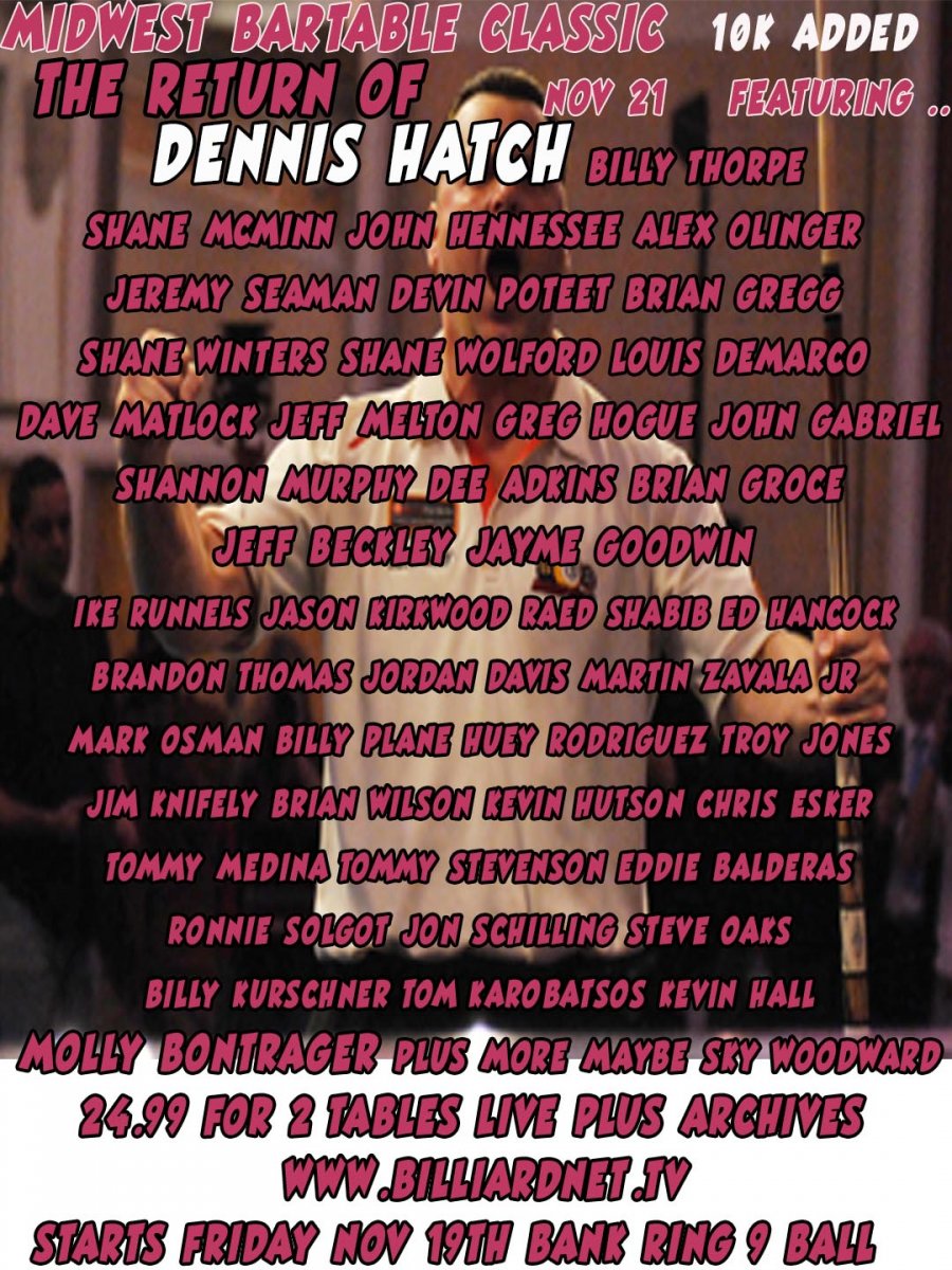 Featuring the return of Dennis Hatch who has been practicing up as witnessed by his recent videos on his FB page! We are really excited as well know you are to see one of Americas most naturally talented players return to the ring after a several year hiatus. He will be joining a very classic Midwest field competing for the top prize in one of the country’s longest running events.