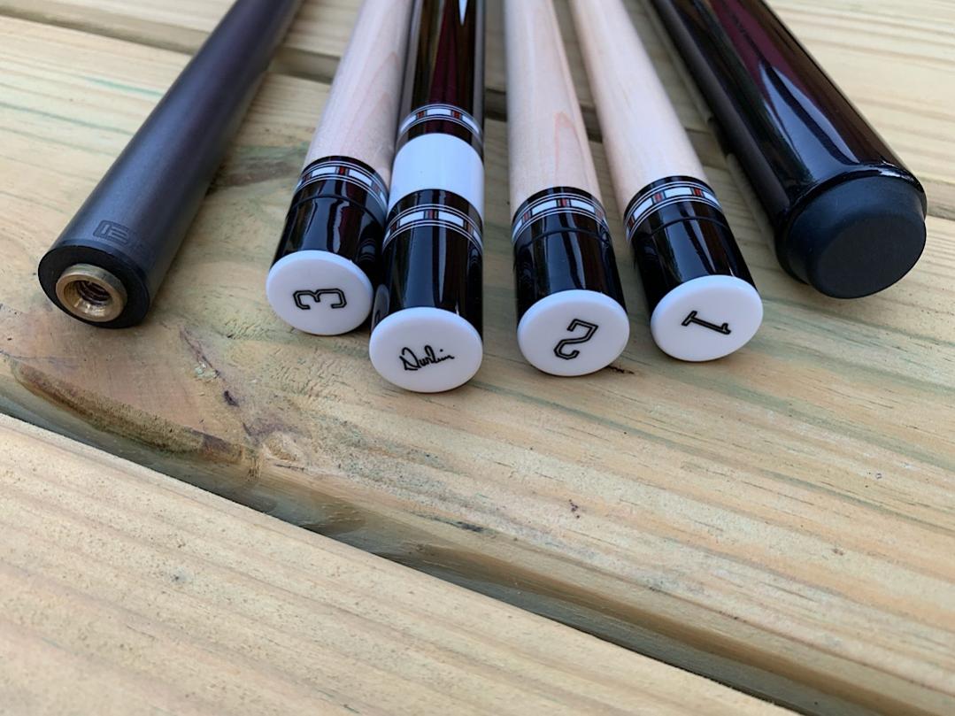 Cue comes with 2 standard Durbin shafts, 1 Durbin LD shaft, a custom extension, and a custom set of matching engraved joint caps. I bought a Revo12.9 and tapped it myself. So no warranty on the REVO and I’m basically just throwing in but it in. If you want a whole package and a REVO to try, here’s your chance. Cue has been played. No major damage but a few marks around butt where the extension screws in. Also you can see a few small scratches etc on the butt due to it being black ebony. Still a beautiful cue. I tried to capture one mark in one of the pics but hard to pick up. Asking $sold shipped in US total for cue with all 4 shafts and extension. Not really looking for trades on this one unless SW and I can add some cash...