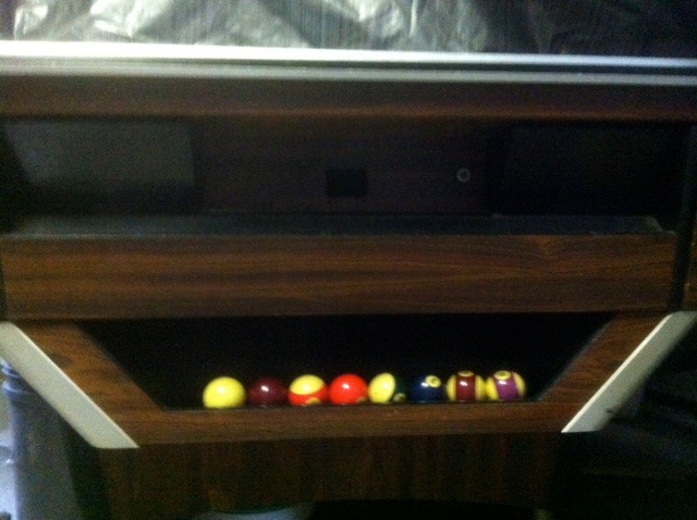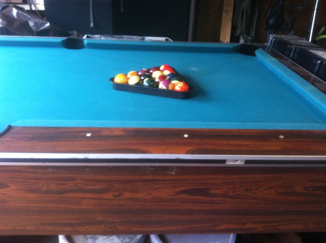 I'm about 99% sure it's a "Quality" coin-op pool table, built by "Baker Mfg, in Gardena, CA. The slate on it is 3/4"...but need more pictures to be 100% sure.