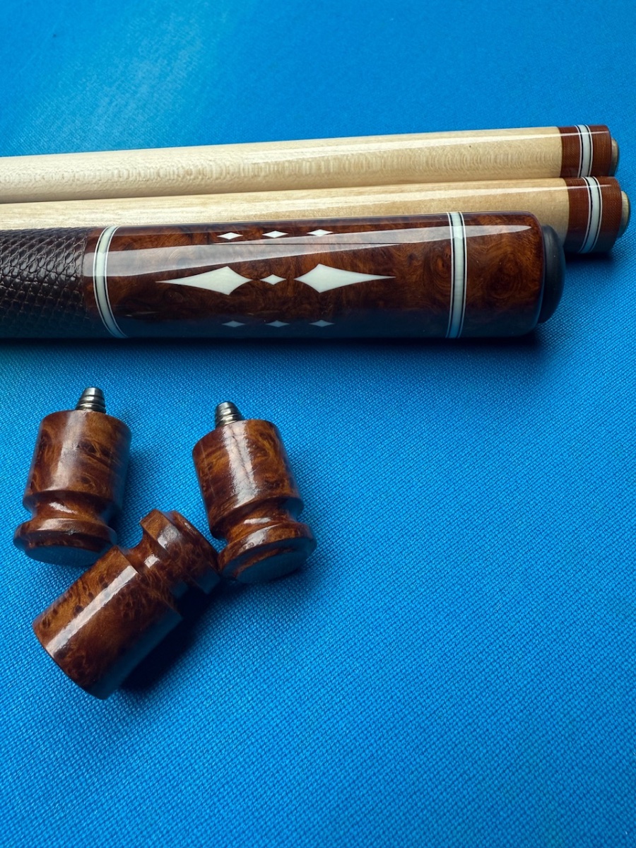 Cue is in excellent condition. Has some of the best grain amboyna Burl and ivory.