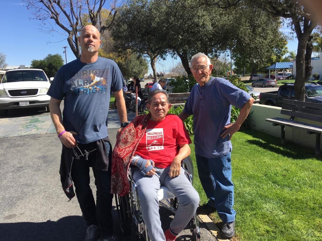 Little Al Romero and I went to Upland Rehab Clinic in February to see Morro again and it took a little while for us to find him. We also arranged to meet Frank 'da barber' Almanza. Everyone there was so helpful in helping us locate him and of all places, Morro was breaking a sweat in the exercise room on the life cycle. I can't tell you how happy we were to see this considering that our expectations were a little different. The last to times I went to visit Morro, he was bedridden, not moving and seemingly helpless; to say the least it was not very hopeful. But to see Morro in motion again pretty much brought tears of joy to my eyes; his hair grown back, color in his face and smiling the whole time we were there.