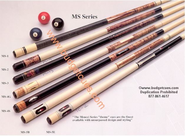 Mine looks like the MS-4S shown in the picture you posted but is gold inlay. I did try to sell it 15 years ago with pictures on Ebay and had a "hidden" (Forgot what Ebay calls it) of $1,000.00 dollars. Over 800 people looked at it but no bids. Just wrong time to sell and wrong lookers. People on Ebay want to buy something worth much but pay almost nothing for it. I was told by a friend to take it to a pro turnament as maybe a pro might by it. Although I can't go to them cost wise just to see if it sells. Oh well. I don't play pool with it as I have an Adams so it sits in a closet and has for many years. When I die my Aires will probably pawn it for 50 bucks. Oh well!