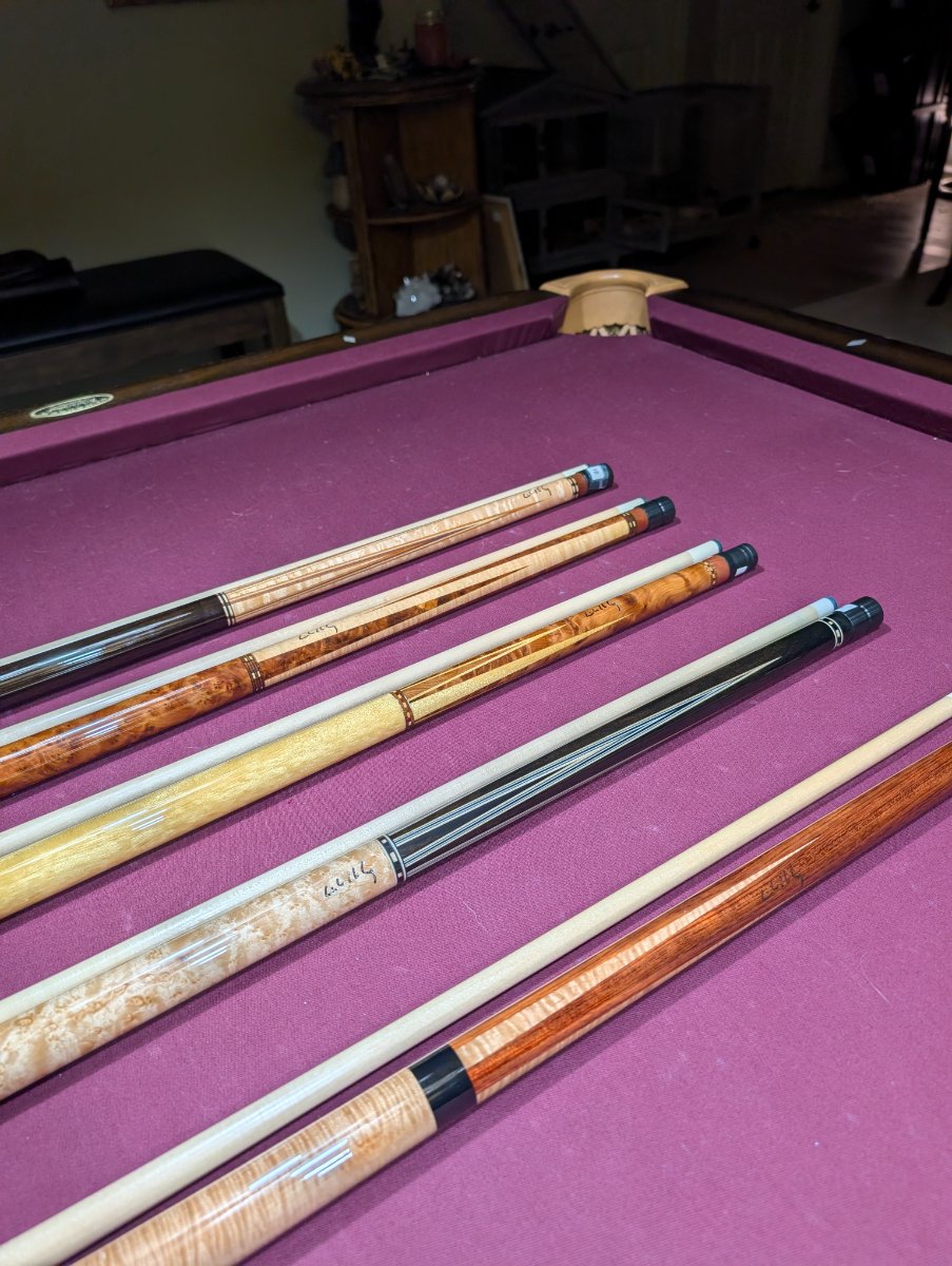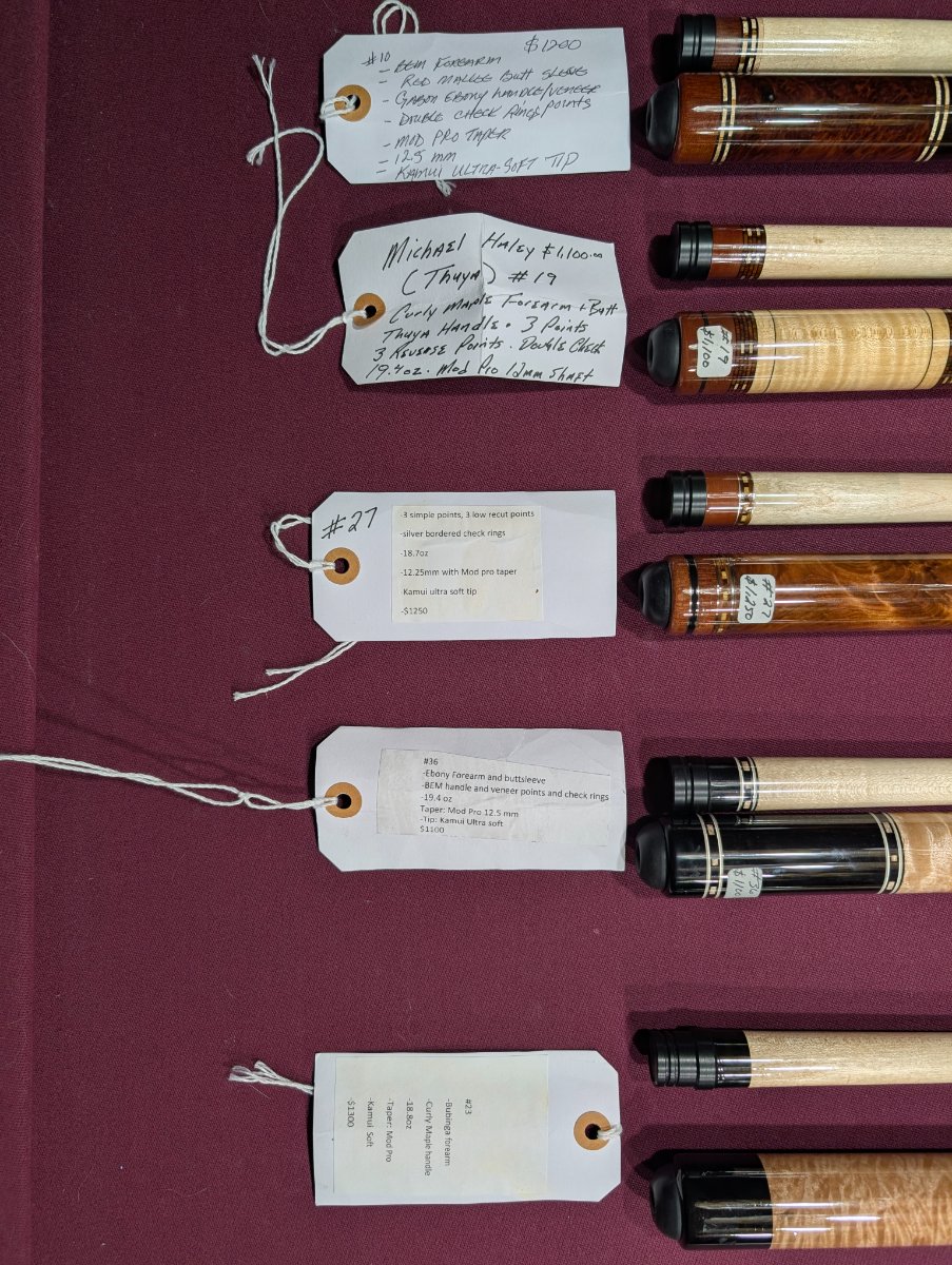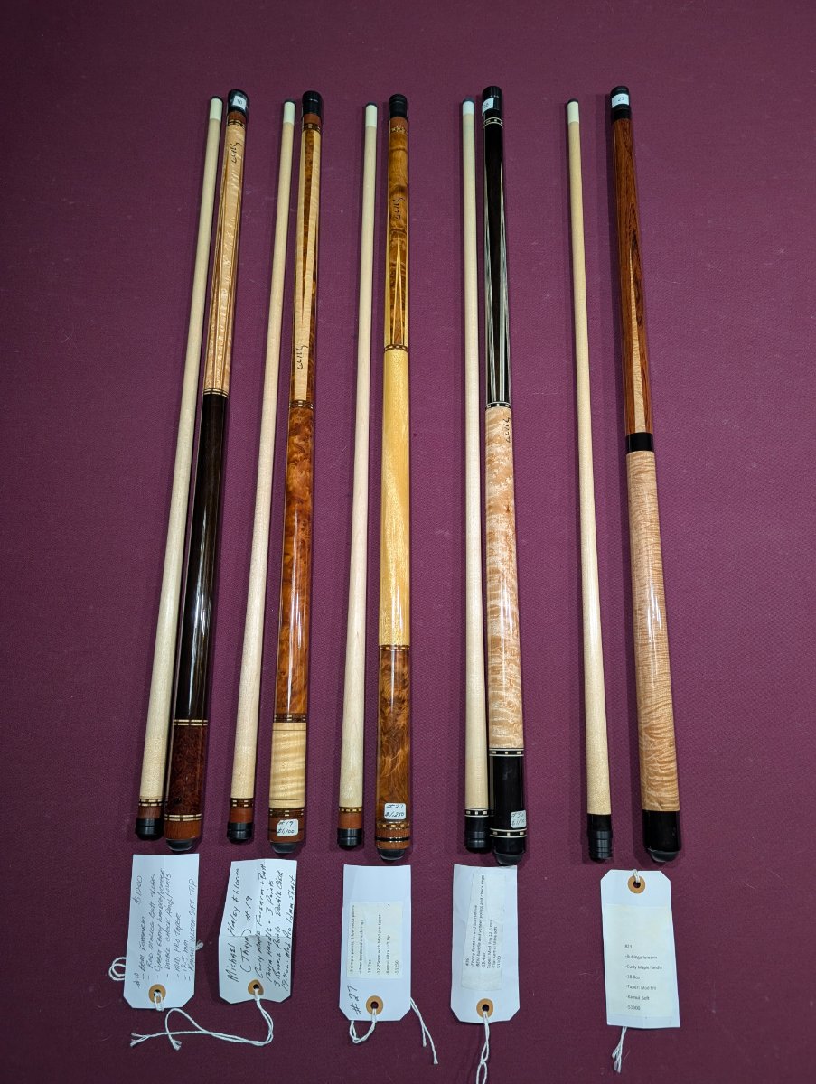 For sale are multiple Michael Haley Custom Cues. I purchased these a few years ago from Buffalo Billiards and each cue has its own card with specifications below it. Unfortunately, any specifications past that, I am unaware of.