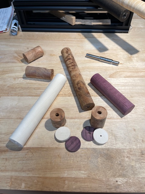I do not have a taper bar so I had to do multiple offset cuts to get a pro taper. I just added a simple purpleheart ring to the shaft. It has a phenolic insert for the pin threads