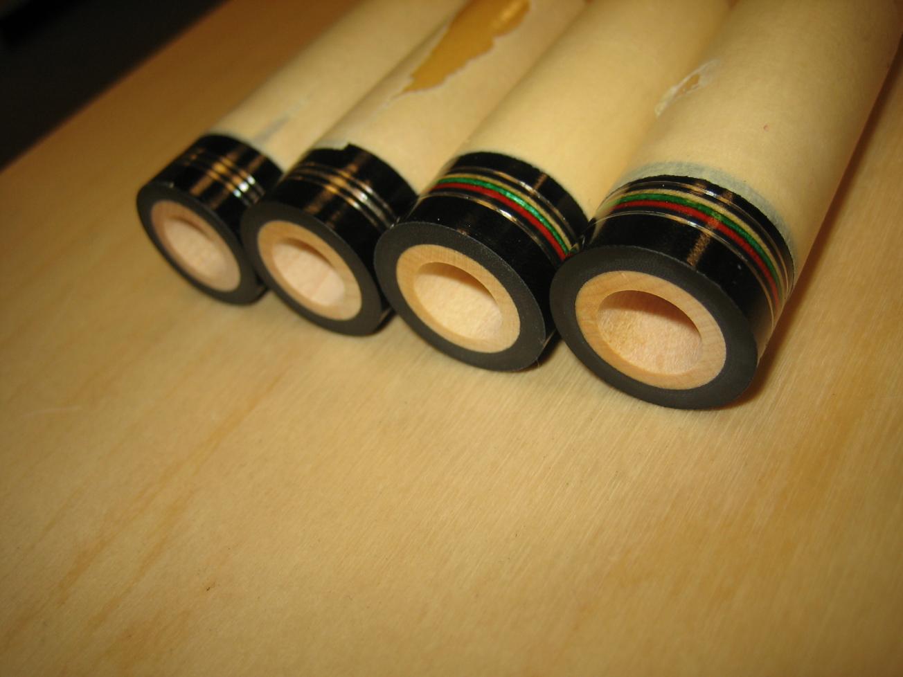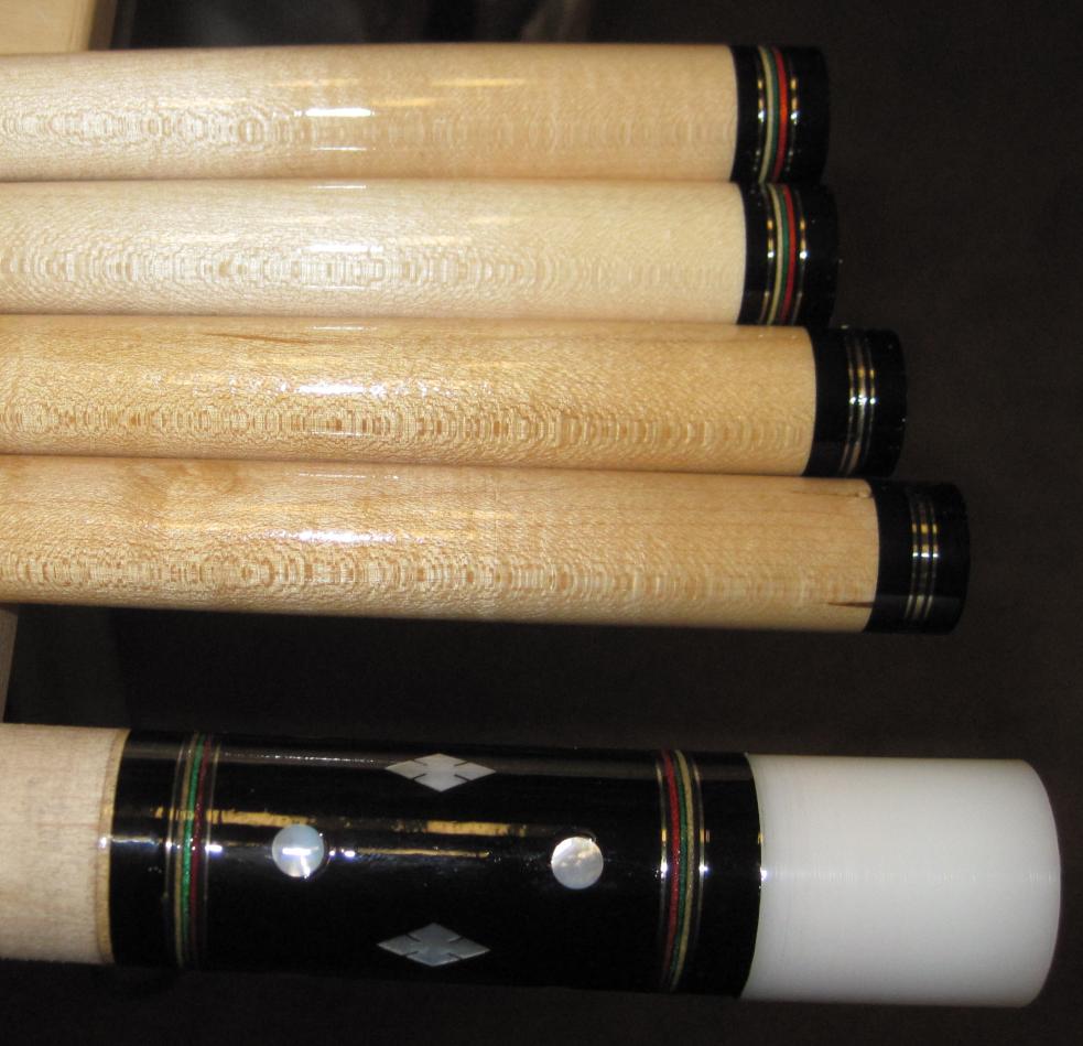 I also applied clear to the four shafts (two for the Titlist (made from Tru-Balance cues) and two for this cue of new stock wood).