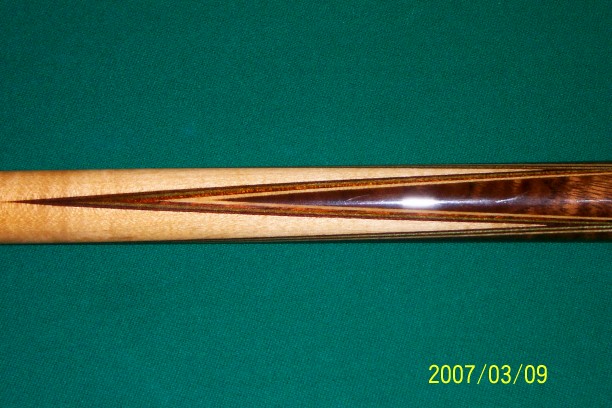 You hit on some very valid points, the best being you have to do what makes you feel good. That's the important thing. If you aren't happy, it will show in the cues. Besides if we wanted to just stand at a lathe and turn out parts we could probably make more money running someone elses CNC machines. I especially like the comment about the wood talking to you. I've had some long conversations with some cues, sometimes one sided. They are most often correct. I like to hang them on one side of the shop and just look at them from a distance. I seem to see colors better that way. I look forward to seeing some of your future full splice work.