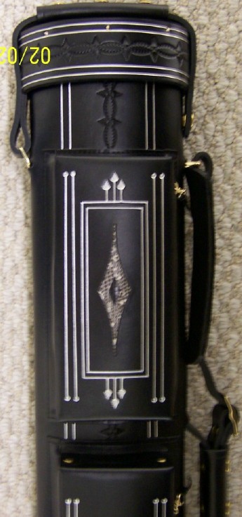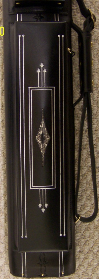 Jack built this case for me with my Ron Haley cue in mind. Boxes on the pockets with Ring Tail Lizard diamonds. What a work of art! Jack has really hit a homer with the Pro Lite design...it is so much lighter. Sorry for my crappy camera skills...it certainly does not do justice to this Justis. ;)