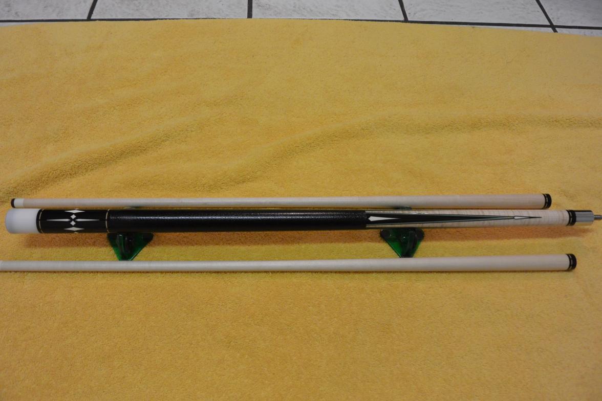 Have a look at my new Ned Morris custom cue. The cue is a sweet 4 point player. All the white except butt cap is ivory. I can't wait to shoot with it. I think the forearm is curly maple correct me if I'm wrong. It has ebony butt and points. I think Ned's cues are some of the best playing cues I have played with. Thanks Ned, and thanks for looking. :thumbup:
